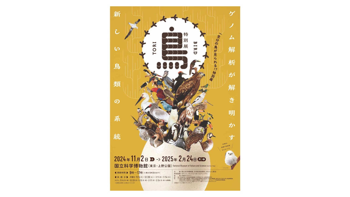 国立科学博物館で、特別展「鳥~ゲノム解析が解き明かす新しい鳥類の系統~」が開催されている。