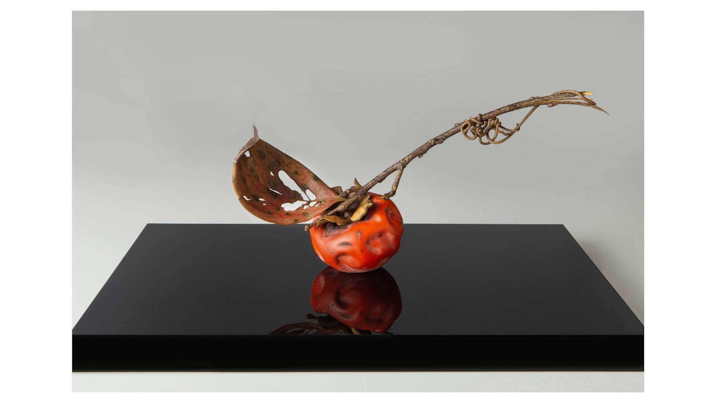 本展は、作家にとって同廊での初個展となり、岩崎の代表作である柿をモチーフとした木彫作品を、新作含め発表。