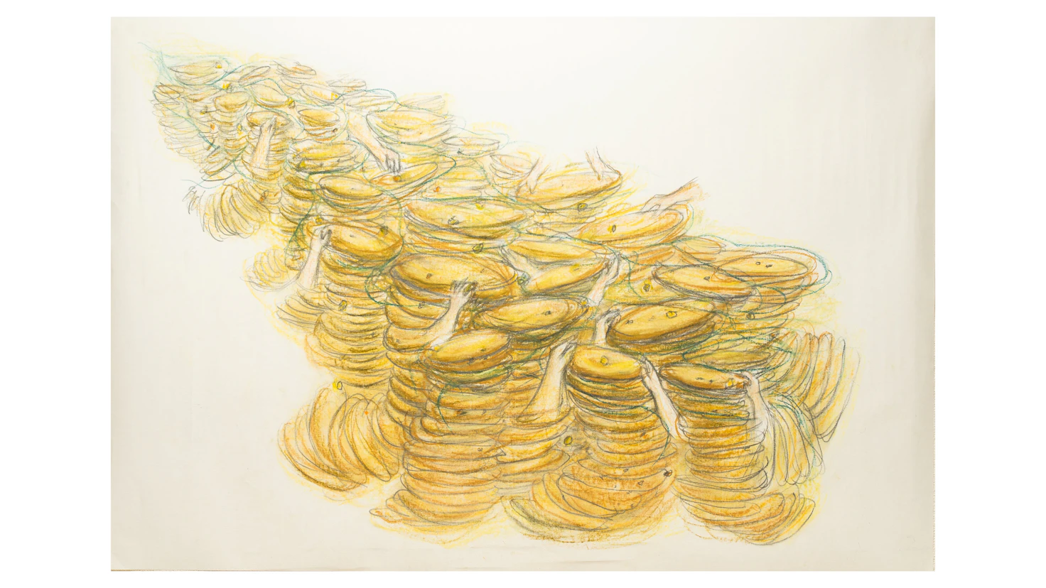 今回の展示にあたり野村は、金沢における砂金採りの営みに着目する。市内を流れる犀川で行われてきた砂金採りの動作にもとづき、すくって揺するという身振りから着想を得た新作インスタレーションを展示。その身振りは、川の流れに喩えられる自然のダイナミズムや土地の歴史と重なり、人と自然の営為の交差を示す。