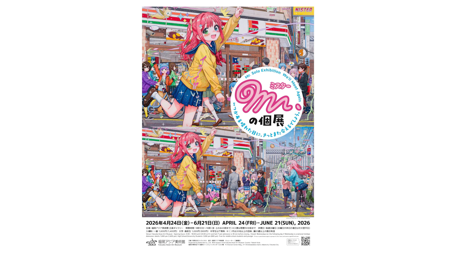 Mr.(ミスター)は1969年キューパ生まれ。96年のデビュー以来、日本のアニメやマンガ、ゲーム、オタク文化といったサブカルチャーを取り込みながら、独自の表現を展開してきた。日本固有のポップカルチャーを現代アートの文脈で昇華させた表現は国際的にも評価されており、ペロタンやリーマン・モーピンといった世界的なギャラリーでの発表や、海外の美術館で個展を開催するなど精力的に活動している。