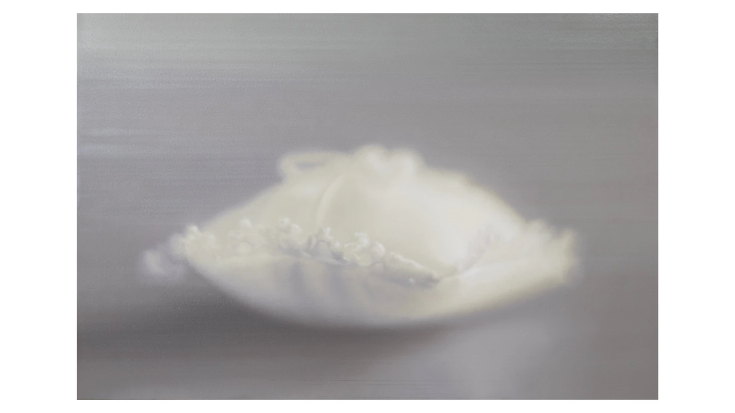 本展では、およそ2センチメートル角のミニチュアのクッションをおもたるモチーフに、器や果実などの日常的な対象を通じて、「物」とその「周囲の空間」を描くという伊庭の近年の探究が提示される。作家は一度写真として対象をとらえ、それを観察しながら光や質感、空気といった要素を抽出し、再構成する。