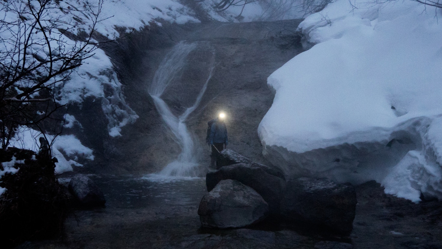 長坂は、カムイワッカという言葉が内包する表裏一体の精神性に惹かれて調査を開始。生命がいないと言い伝えられてきたこの滝には、実は生物が存在していることを発見する。神の水、そして魔の水の滝に棲むその生物見るべく、2018年3月、長坂はまだ雪で閉ざされている知床半島に分け入り、徒歩でカムイワッカの滝を目指した。