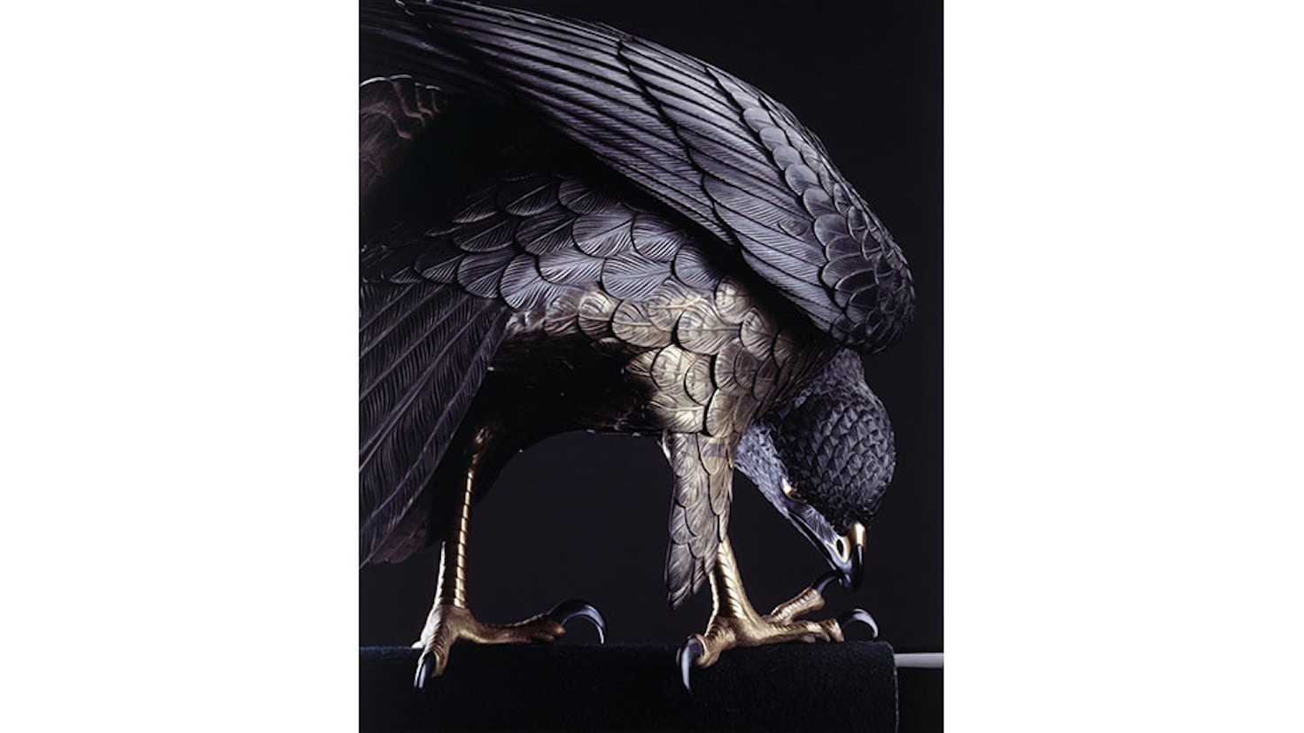 そのなかでも見どころとなるのは、重要文化財に指定されてから初めて公開される、金工家・鈴木長吉の作品《十二の鷹》。1893(明治26)年のシカゴ万博で展示された、当時の姿を留めた同作品を通して、日本の「現代美術」を世界に発信したいと願った情熱を伝える。
