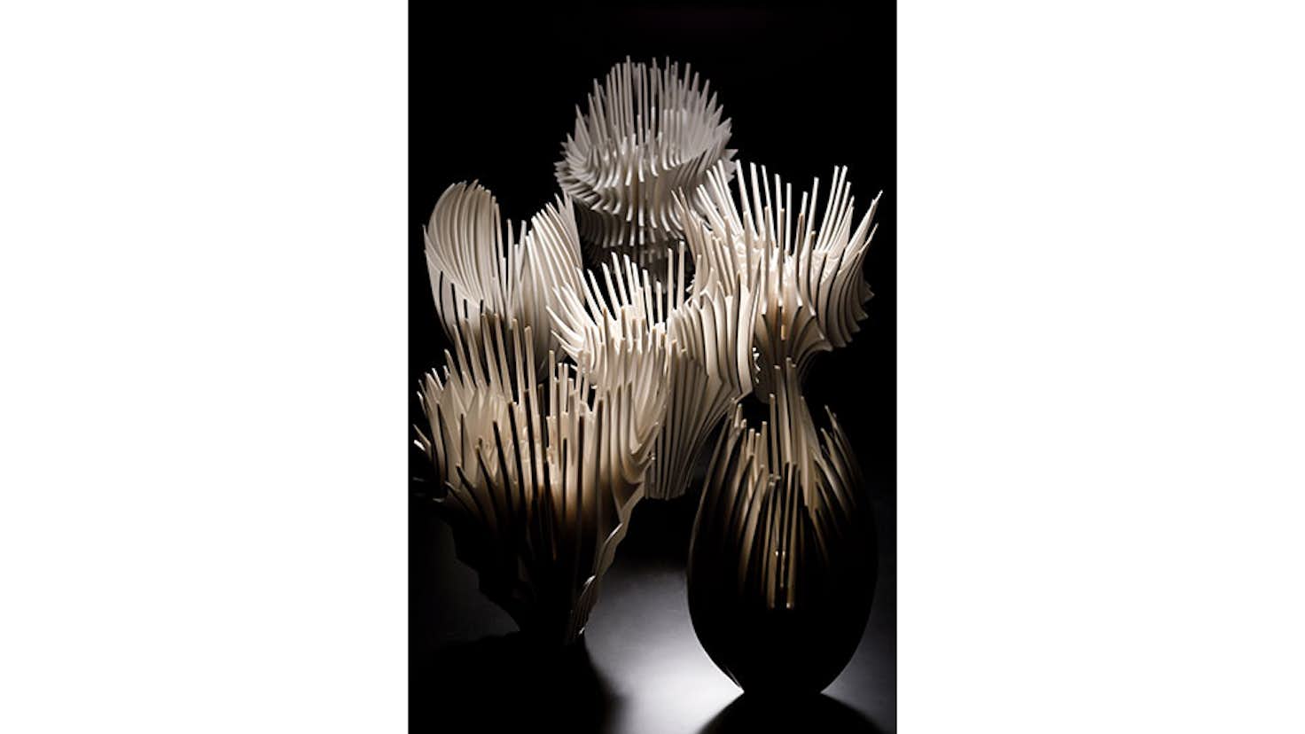 本展では、奈良の処女作であり高い評価を受けている「Bone Flower」シリーズと、「Ice Wall」シリーズ20余点を一堂に展示。本展で新たに発表する「Ice Wall」シリーズは、陶芸と最先端のテクノロジーの融合の先に見つけた新しいかたちを提示する。