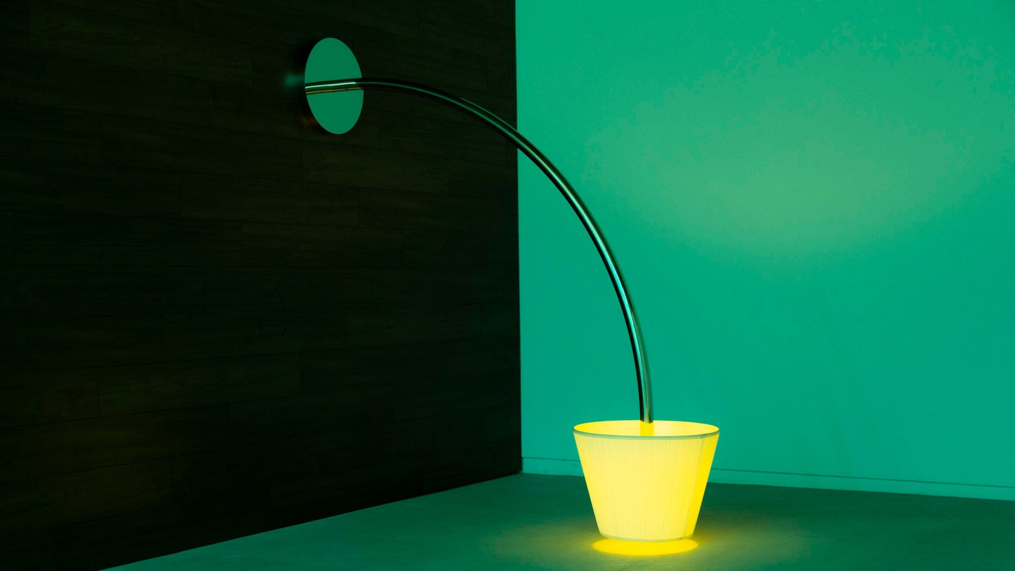 90度回転した床、あらぬ方向に歪曲し、壁から唐突に突き出たうな垂れている「フロア」ランプ、ギャラリーの床の「地平線」とは違う角度で「水平線」を描く、グラスの中の固まった水など。ニュートン力学に支配された世界では起こり得ないこれらの状況を、玉山は極めてアナログな手法でつくり出す。