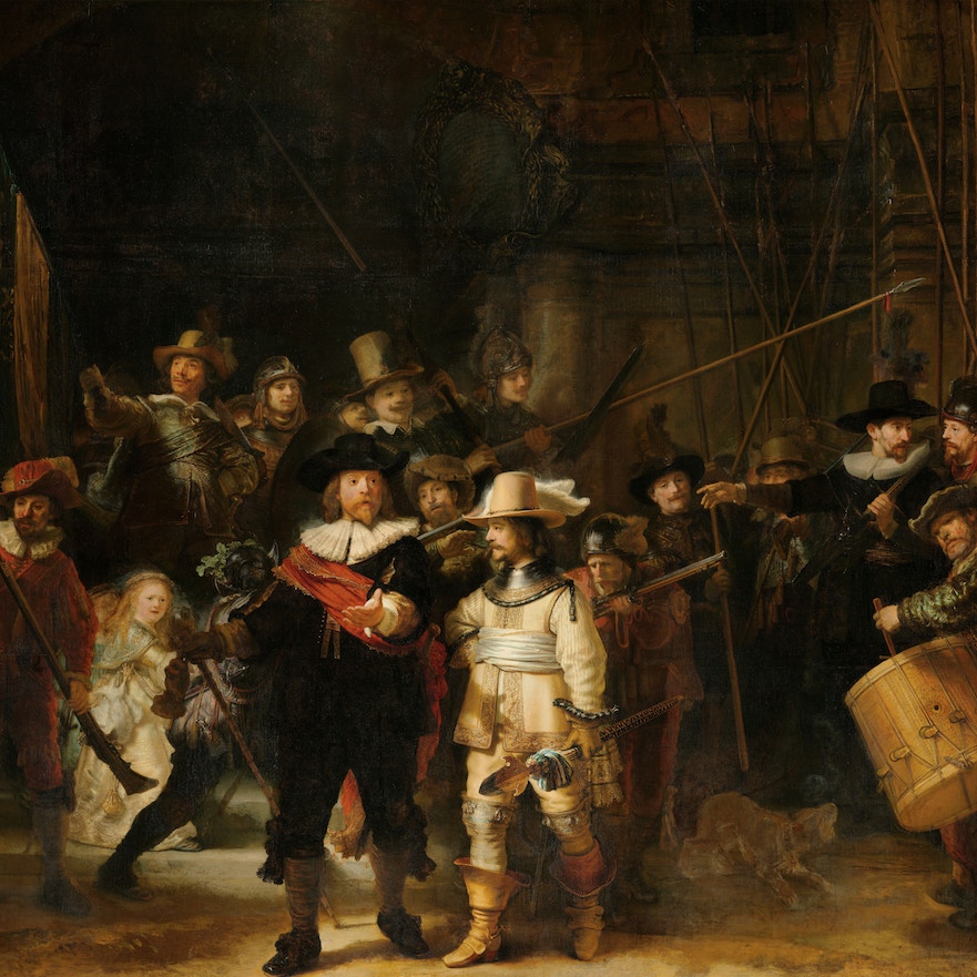 バロック期を代表する画家のひとり、レンブラント・ファン・レインは1606年オランダ生まれ。「光と影の天才」と賛辞されるほどに巧みな明暗表現を得意とし、劇的な表現方法による集団肖像画を多く残した。
