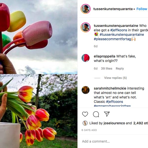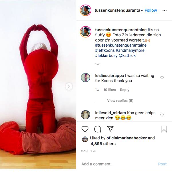 ルールはシンプル。1、アート作品を選ぶ。2、家にある3つのアイテムを使い、作品を模倣して写真を撮る。3、写真に「#tussenkunstenquarantaine」のタグをつけて投稿する。
