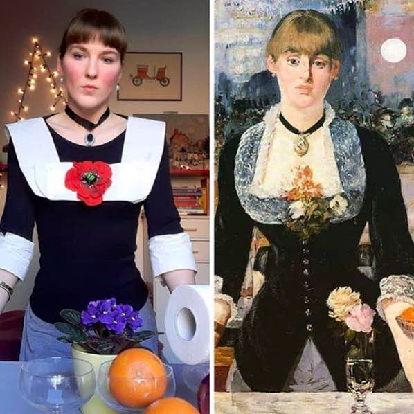 3月14日に誕生したこのアカウントは現在、メトロポリタン美術館やルーヴル美術館などを含む14万以上のユーザーにフォローされており、世界各国のユーザーによる約450点の作品が掲載(4月6日時点)。そのうち、フェルメールやファン・ゴッホ、ダ・ヴィンチなどの傑作を模倣した作品が数々楽しませてくれる。