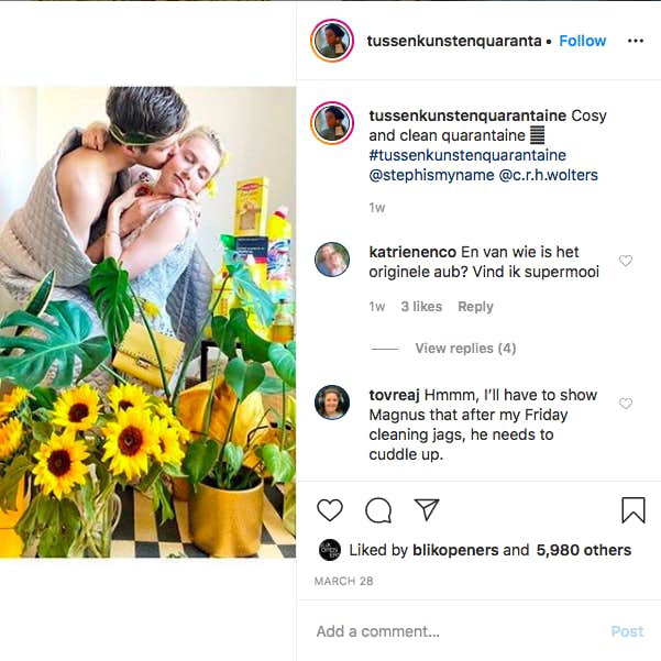 新型コロナウイルスの影響により世界各国で外出禁止令の発令が続々と出ているなか、自宅で世界の名画を再現するトレンド「#tussenkunstenquarantaine」がInstagramに誕生した。