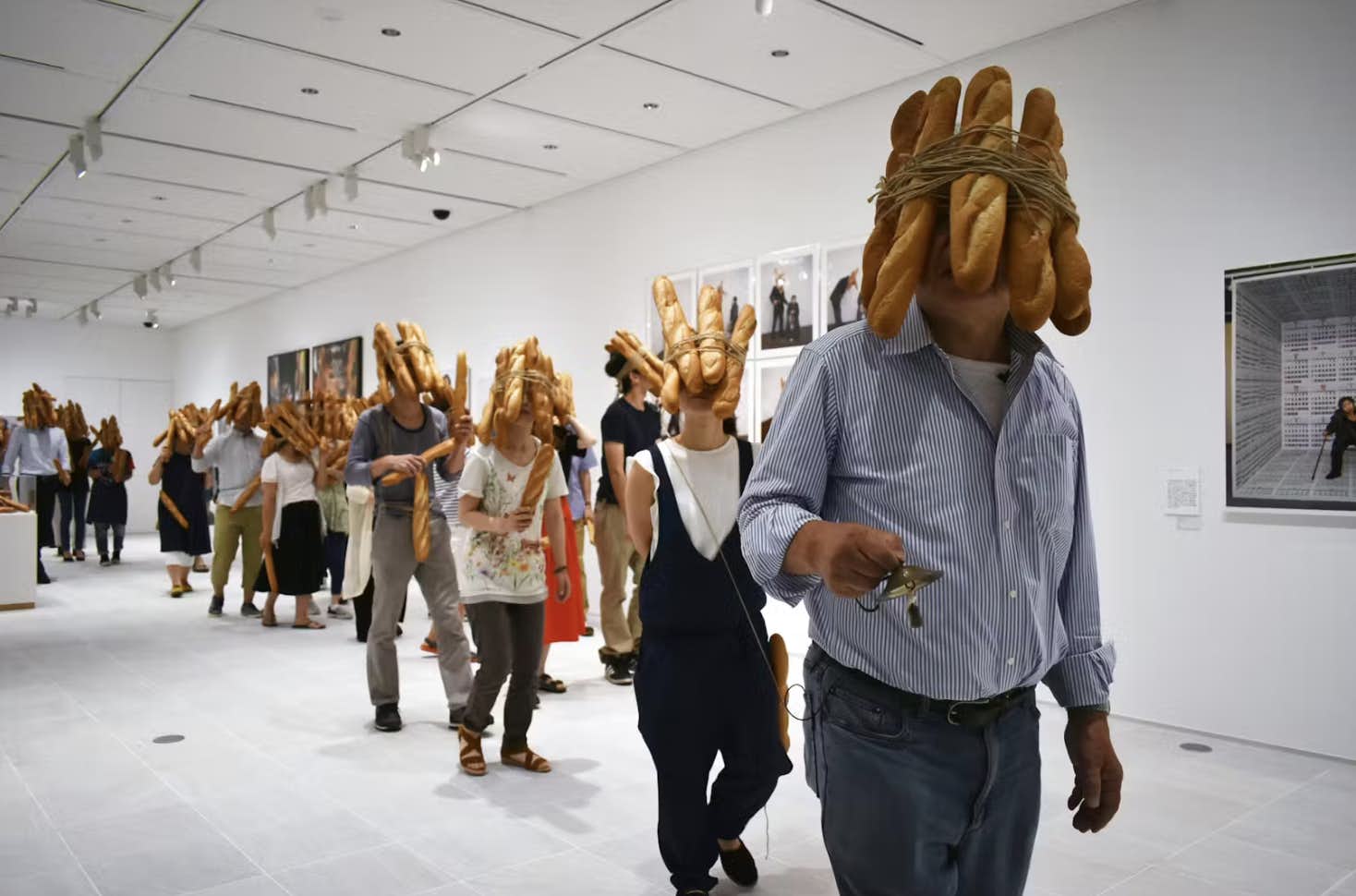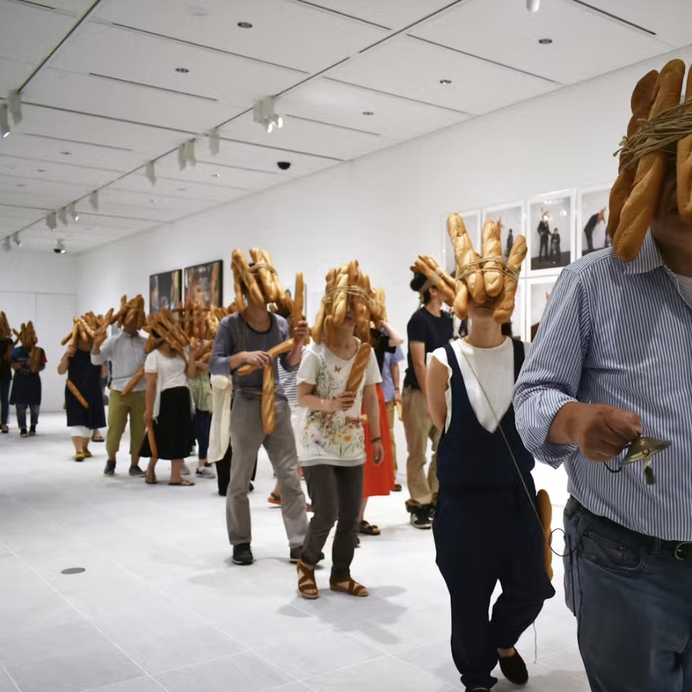 「私は、顔に数個のパンを付けて、世界中の街に突然出没して、それぞれの国の人々とのコミュニケーションを記録しているパフォーマーです。駅、カフェ、レストラン、ストリート、病院、なるたけ多くの地元の人がいる所のパブリックスペースを絶好の場所として、パン人間パフォーマンスを始める。面白がる人、驚く人、変な物を見る眼でのぞく人、レストランで、ウェイトレスに追い出される時もある。怒鳴られたり、喜ばれたり、色々な異なったリアクションがあるが、色々なコミュニケーションこそ、私のアートなのである。」(*1)