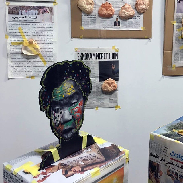 介護すること自体をアートにし、愛する母・男代を作品に登場させた《アートママ 小さな母と大きな靴》(1997)、や《アートママと息子と大きなパン》(2012)などを発表してきた折元。しかしながら、その母も97歳となり、最近ではベットに横になっていることが多くなったという。「2人で一緒に作品におさまるのは無理なようなので、こうなったら、化粧して、女装して、私がアート・ママになってしまえと思い立ち、このような作品をつくるようになりました」。そのような発想から、今回の「化粧して、アート・ママに成る」は生まれた。折元にとってまったく新しいアプローチだ。