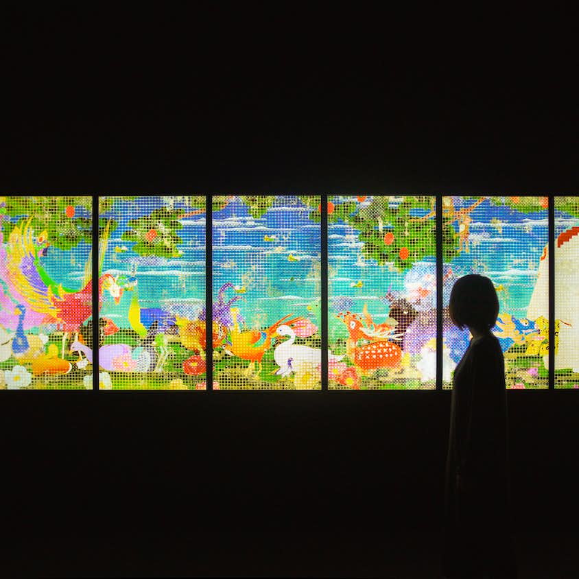 本展では、大規模なデジタルインスタレーションである《世界は暗闇から生まれるが、それでもやさしくうつくしい》(2018)、《Black Waves: 埋もれ失いそして生まれる》(2019)、《永遠の今の中で連続する生と死、コントロールできないけれども共に生きる》(2019)の3作品に、伊藤若冲の桝目描きとして知られる《鳥獣花木図屏風》と《樹花鳥獣図屏風》をモチーフにした作品で、高橋コレクションに収蔵されているモニター作品《世界は、統合されつつ、分割もされ、繰り返しつつ、いつも違う》(2013)の計4作品を展示。アートファンのみならず、ふだん美術館に来館しない層にもアプローチし、10万人超えという同館にとって空前の来場者数を記録している。