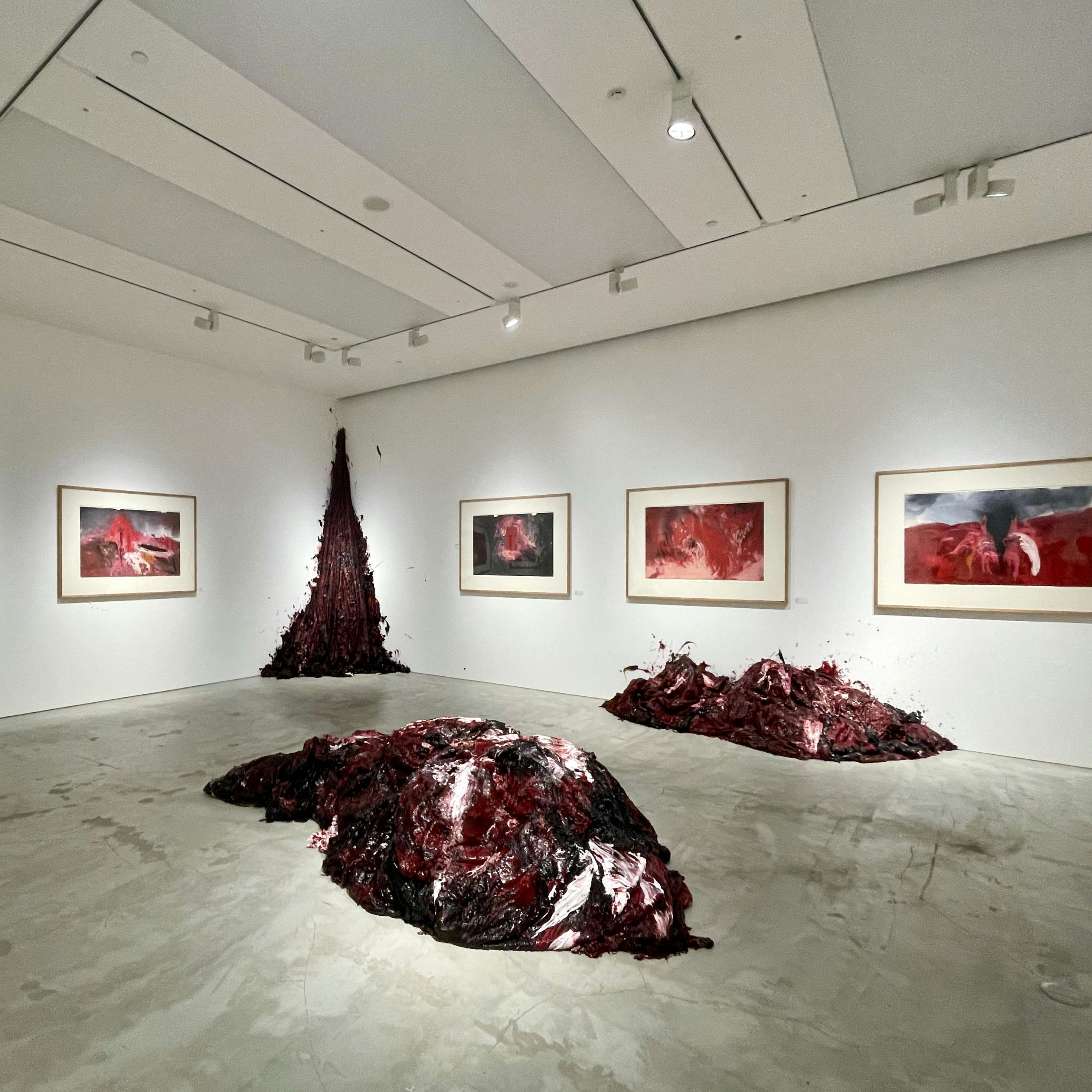 展覧会「アニッシュ・カプーア_奪われた自由への眼差し_監視社会の未来」は、2017年に企画開催された「コンセプト・オブ・ハピネス_アニッシュ・カプーアの崩壊概論」展(GYRE GALLERYの前身EYE OF GYRE、2017)の続編という位置付けとなっている。カプーアの作品を通して、飼い慣らされた「幸福観(euphoria)」に内在している野蛮とは何なのかという命題を掲げ、政治・哲学的イデオロギーでは映し出せないほど複雑な様相を呈している現代の一端を浮かび上がらせようとするものであった。アニッシュ・カプーアは、秩序と混沌、美と醜、生と死、つまり、表層と深層の境界で画することではなく、人間に内在している感覚領域において、理性的な記憶に止まらない身体的記憶を呼び起こすことによって、「文明」と「野蛮」を対峙させ、あたかも「人新世ルネサンス」を目指そうとしているかのようだ。私たちの身体を覆っている皮膚を反転させたとしよう、そこには、人種や性別、年齢を超えた内蔵的身体感覚が漲ってくる。つまり、カプーアの作品には、位相的空間領域が必然的に内在しているのだ。作家のこのような創造の宝庫と発祥地となっているスタジオは、まさにこの「ルネサンス計画」を準備するインスピレーションに充ちた空間なのである。