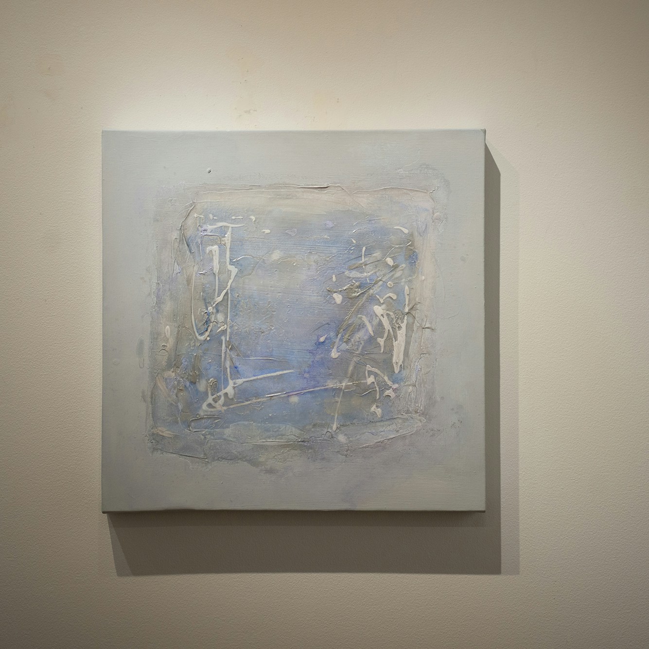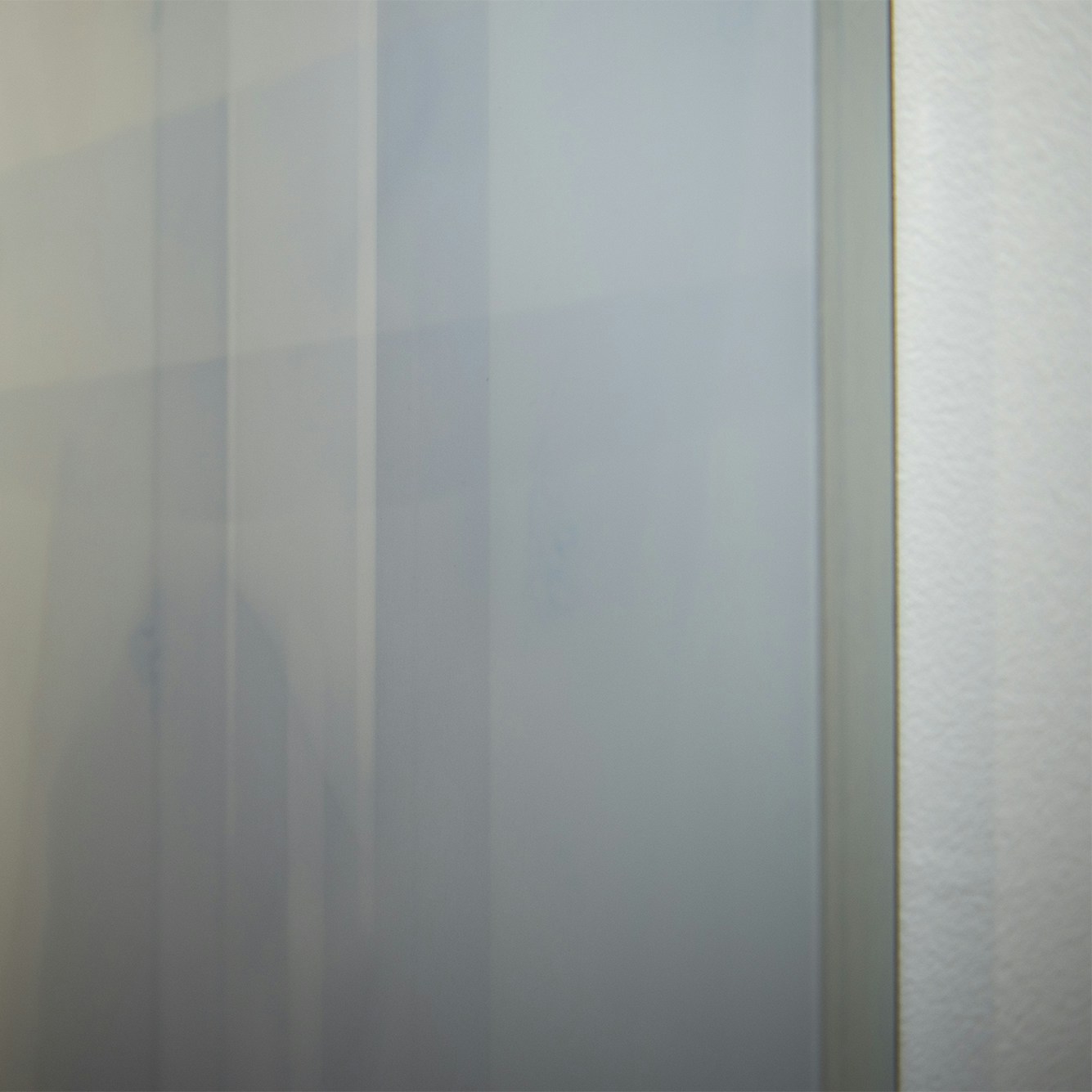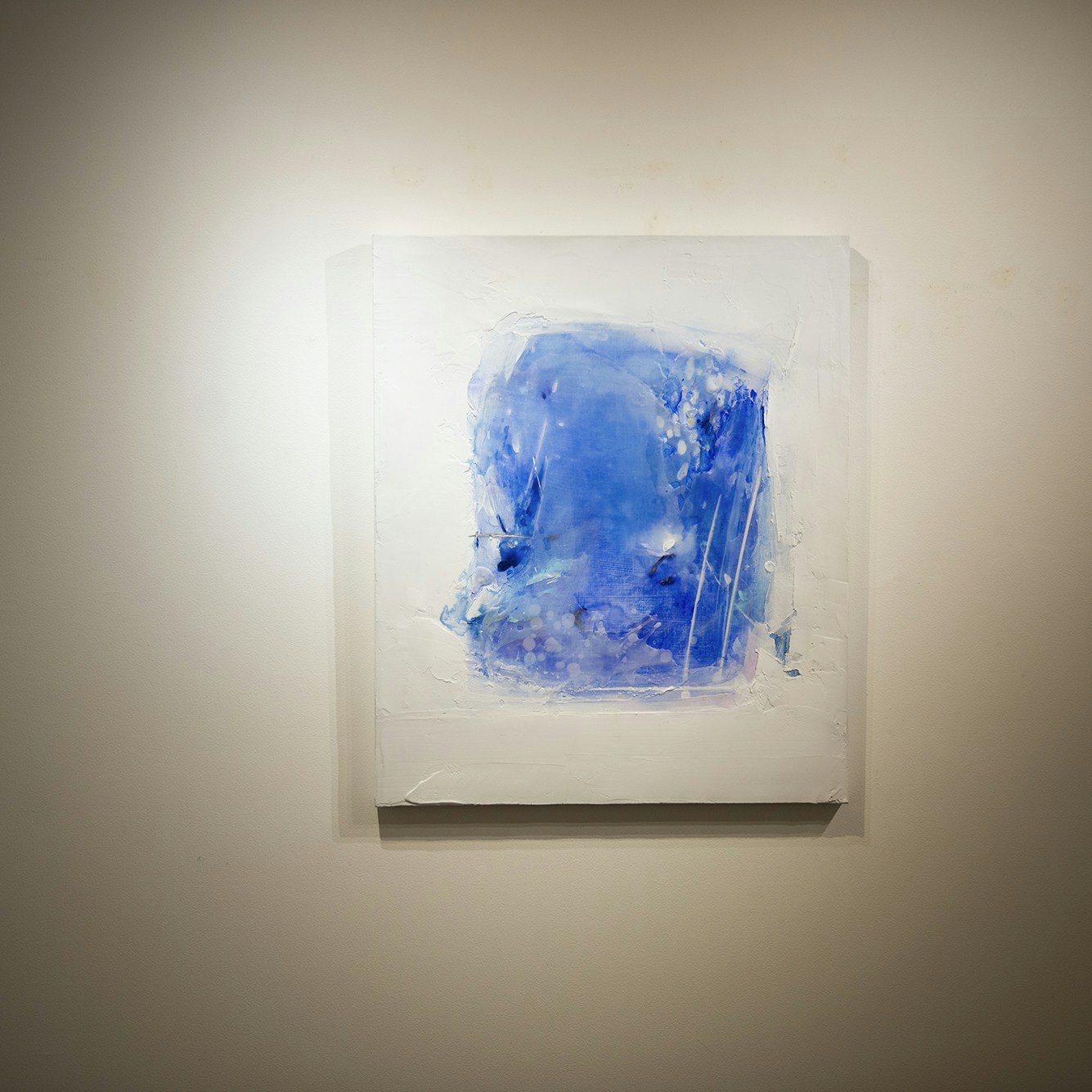 一見すると寒色系のグラデーションで構成された美しい画面。じっと見つめ、自分の目が作品のどのレイヤーを捉えているのかを探るうちに、目がどんどんと引き込まれていくような効果が和田の作品に生まれていることに気づかされるはずだ。