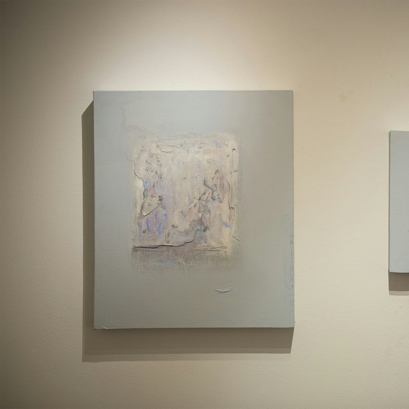 「画材の質感で見せたいというのが、私の表現において一貫しています」と語るのは、小川万莉子。蜜蝋やパラフィンワックスなど、独特な素材づかいでペインティングを手がける小川だが、和田がレイヤーと奥行きによって視覚効果を生み出す材料として漆を用いるのとは対照的に、素材の質感そのものによって効果を生み出すことを目指している。