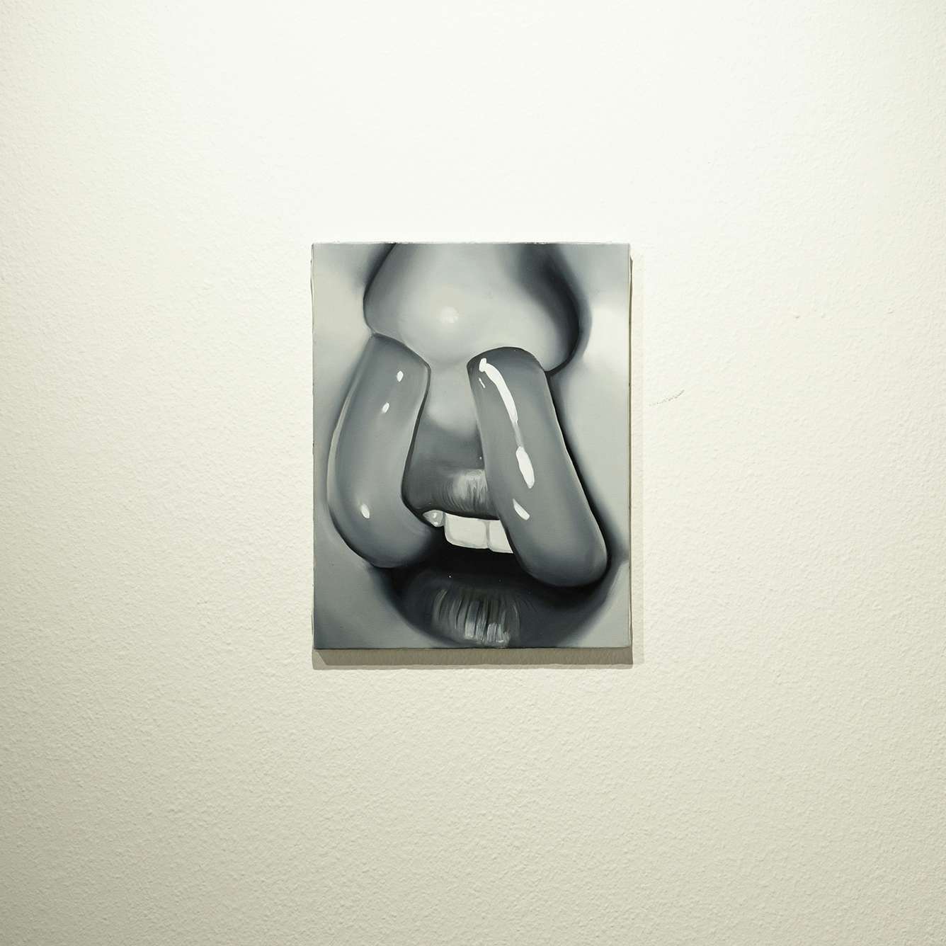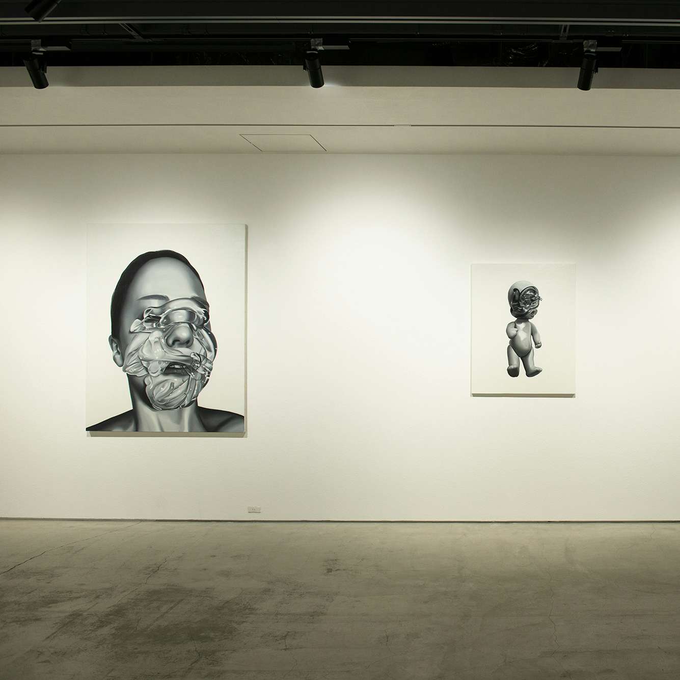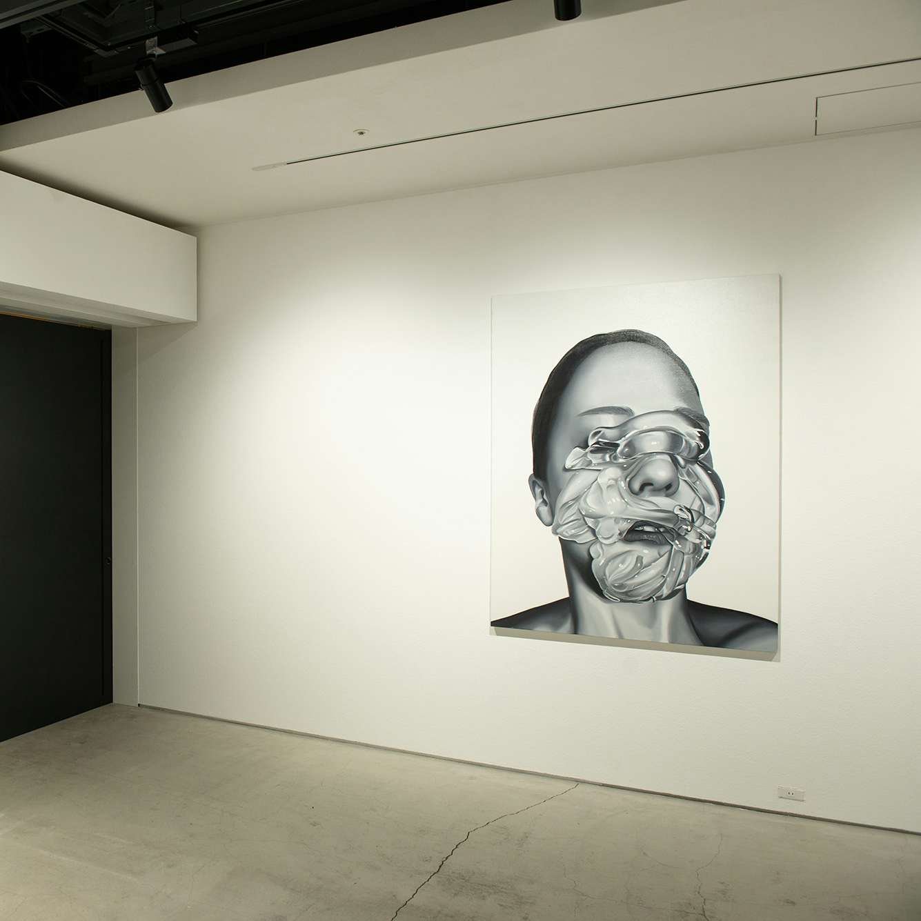 そうした影響から、痛みやドキッとするような感覚を大事にしているのかもしれません。今回の個展にはモノクロ作品のみを出品しているのですが、光沢をただキラッと綺麗に描くのではなく、光沢のヌルヌルが動く感じや、左右の目の焦点がうまく合わずに飛び出てくるように見えたときのドキッとする感覚というのは、人間が持つ五感に触れるからこそ生まれると思うのです。人間が時代を超えて持っている原始的な五感というのかな。それは痛みも然り、気持ちよさも然りと言えるかもしれませんが、そこに触れられる表現こそがドキッとさせる強度を持つように思います。