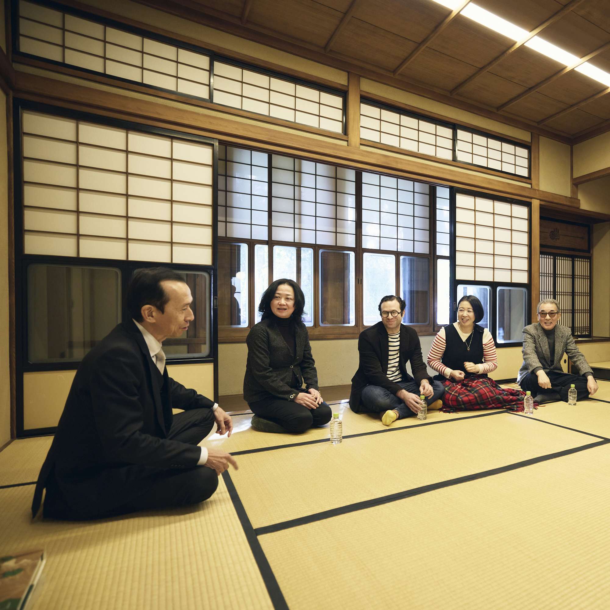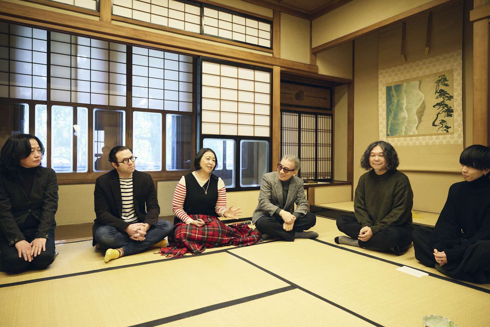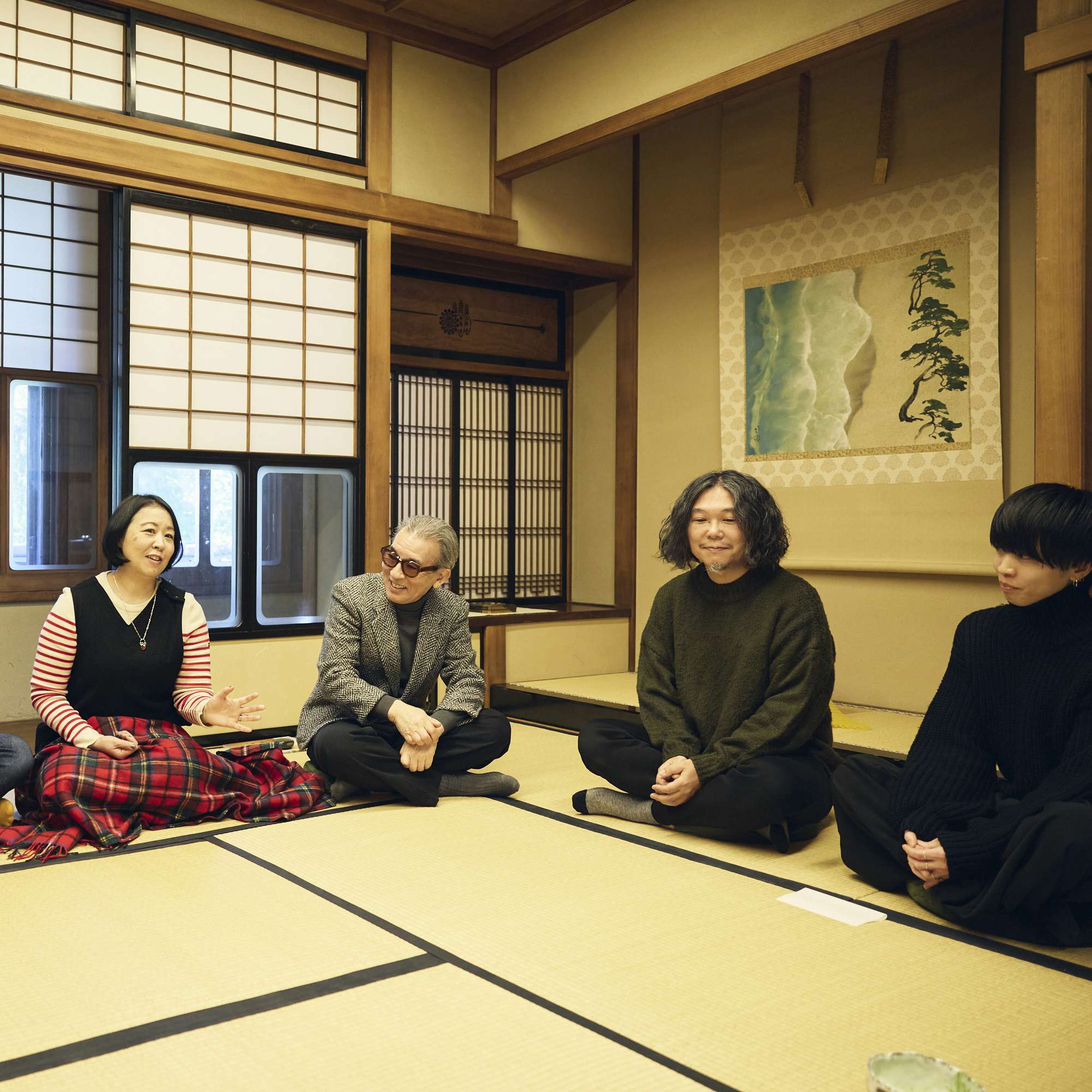 気鋭のキュレーターによる展覧会と、厳選されたギャラリー・美術商によるアートフェアの2部構成で開催し、美術品の価値を様々な角度から伝える新しい試みとして、「CURATION⇄FAIR Tokyo」の第2回はスタート。会場の「kudan house」は、日本でも初期の鉄筋コンクリート造を採用し、スパニッシュ建築様式を取り入れて1927年に建築された旧山口萬吉邸を保存改修した登録有形文化財。中長小西の小西哲哉が新春の設えを行った和室で、座談会が始まった。