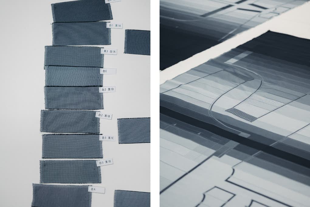 白と黒の糸のみで「光と影」を織り出したテキスタイルの検証 © ISSEY MIYAKE INC.