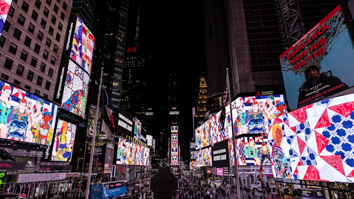 ニューヨーク・タイムズスクエアにおいて、23時57分から深夜0時までの3分間、現代美術家・松山智一による映像作品《Morning Again》(2026)が4月30日まで毎晩上映されている。資本と公共性が交錯するこの場所で、アートはいかに成立しうるのか。松山へのインタビューを通じて、同作の制作プロセスと背景に迫る。