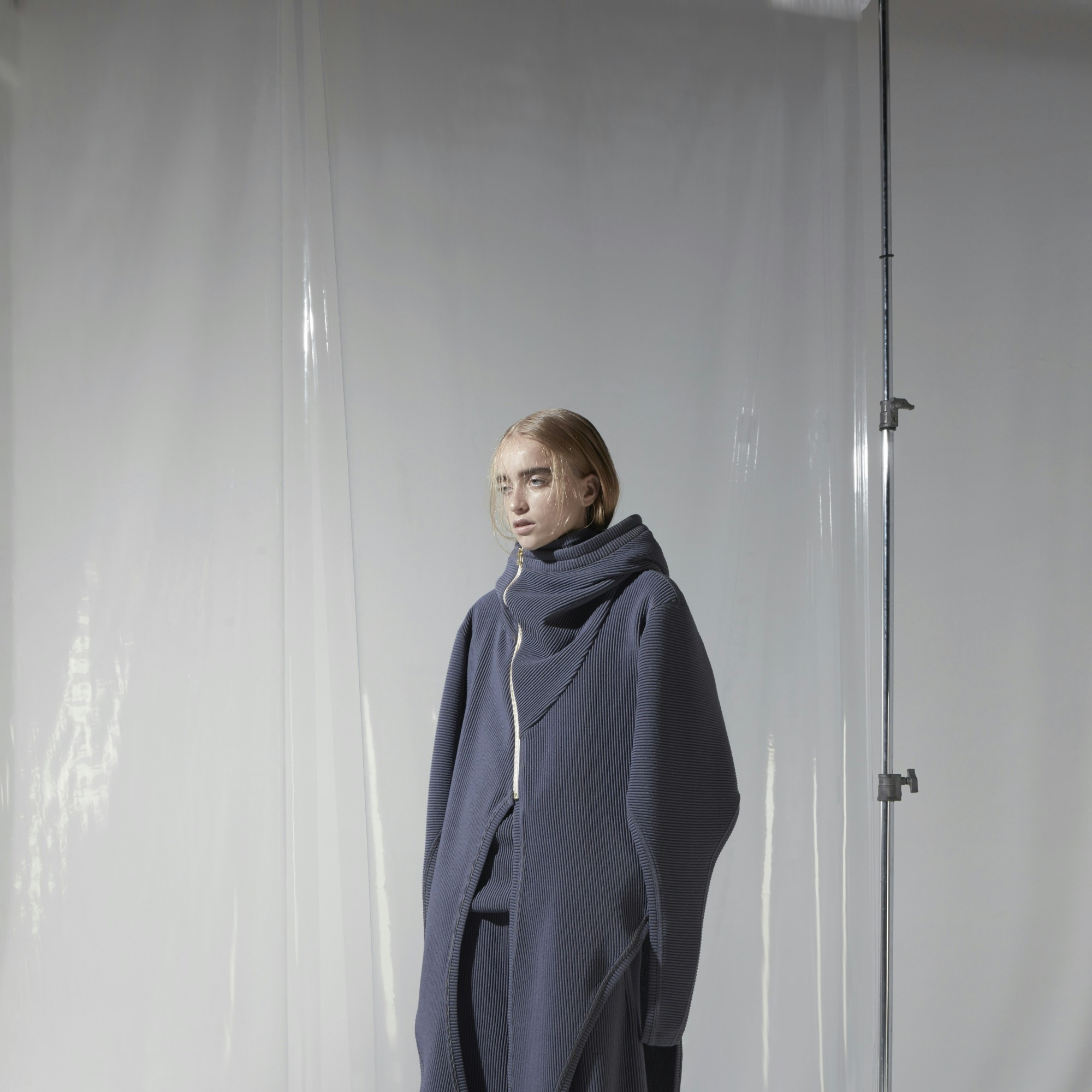 デザイナーたちは日本国内の各地に点在する産地工場の協力を得て、布の選定・開発・加工などのプロセスのなかで素材(キレ=布)そのものに深くフォーカス。絞り染め、ニードルパンチ、プリント、横編みなど様々な手法による素材の持ち味を活かし、共通テーマである「現代の民族衣装」を、デザイナーそれぞれの解釈で制作・展示するという内容だ。