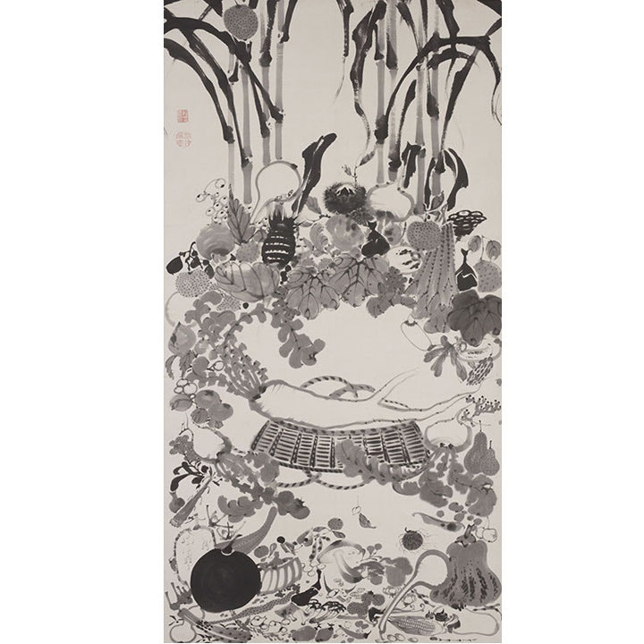江戸中期の画家・伊藤若冲(1716~1800)は、伸緻密な線描と極彩色の作品で知られるいっぽうで、伸びやかな筆遣いとユーモラスな表現が特徴的な水墨画も数多く残した。