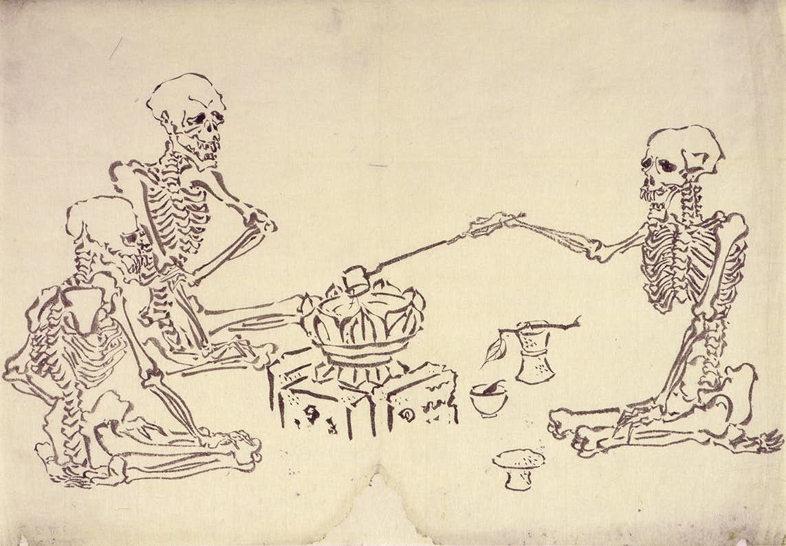 河鍋暁斎 骸骨の茶の湯 下絵 制作年不詳 河鍋暁斎記念美術館蔵 ※前期展示