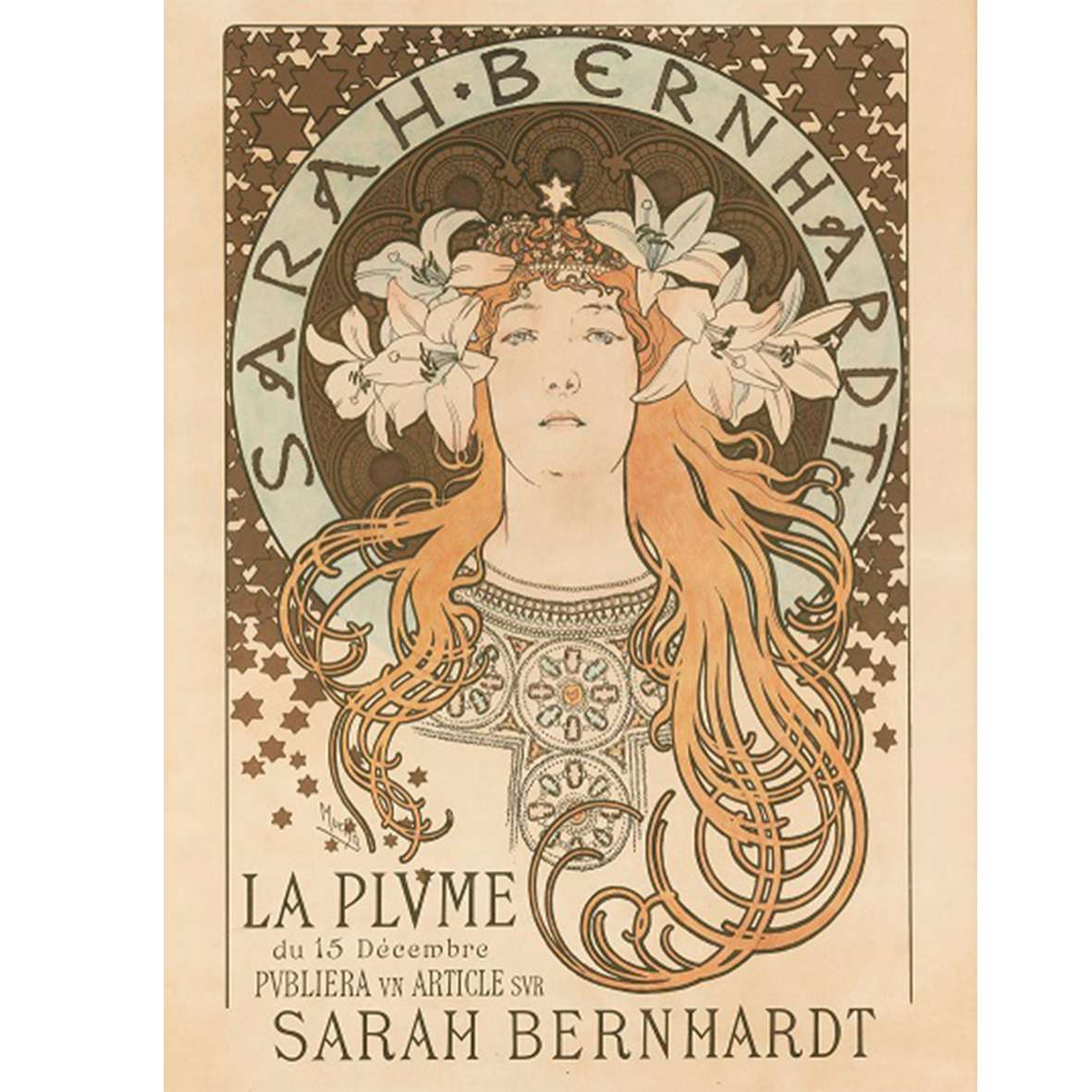 また『ジスモンダ』の公演ポスターが大人気となったミュシャは、ベルナールと6年間の専属契約を結び、その後も次々と主演作品のポスターを制作。当時フリーランスの宝飾デザイナーとして独立したルネ・ラリックも、ベルナールにその才能を見出されたひとりだ。ベルナールがプライベートや舞台上でラリックの装飾品を身につけたことにより、ラリックの作品は世間の注目を集めることとなった。