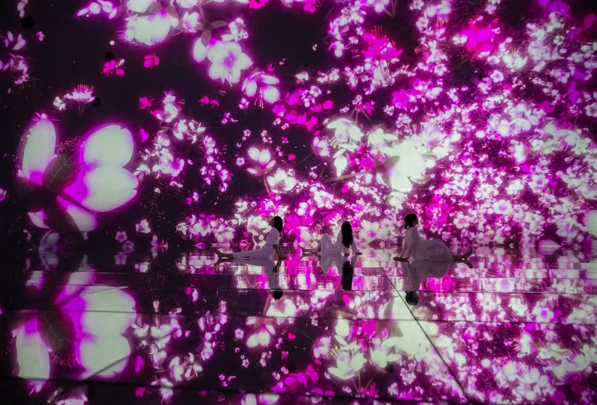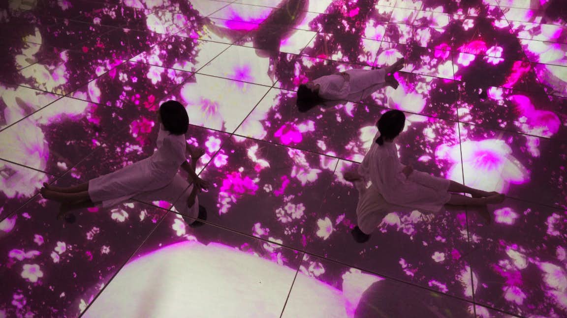 チームラボ Floating in the Falling Universe of Flowers 2016-2018 Interactive Digital Installation Endless Sound : Hideaki Takahashi (c)teamLab