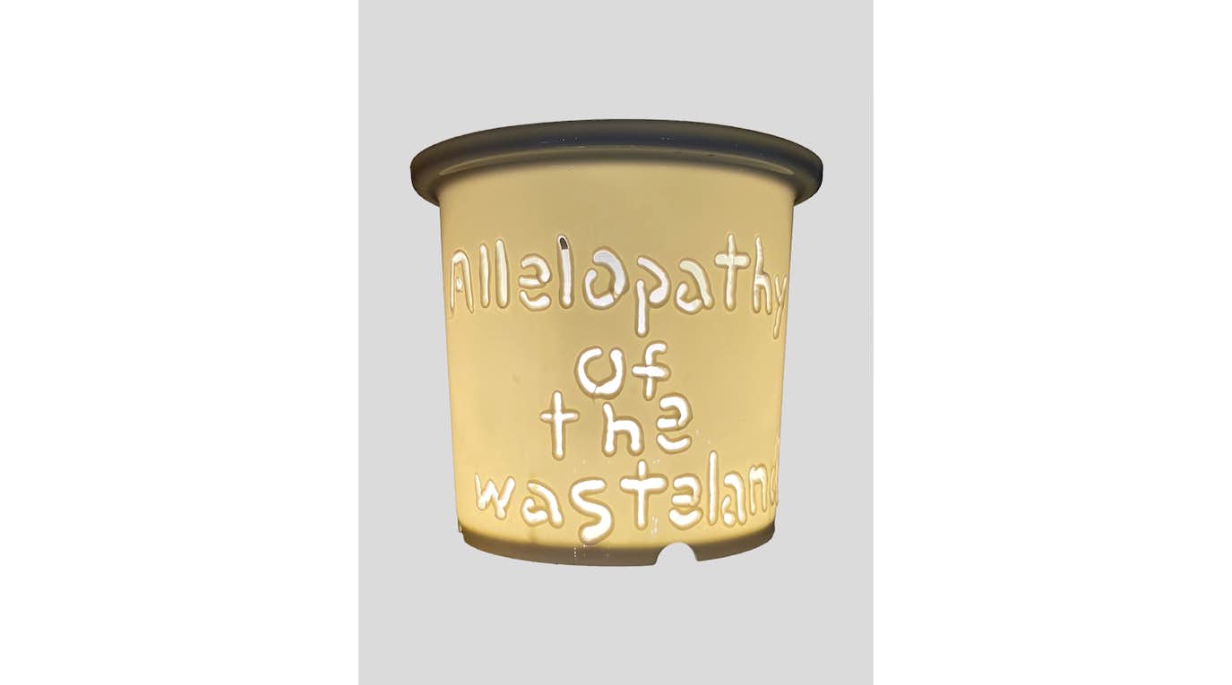 展覧会のタイトルとなっている「アレロパシー」とは、ある植物が他の植物の成長を阻害するために、物質を放出したり、動物や微生物を防いだり引き寄せたりする、といった効果の総称。