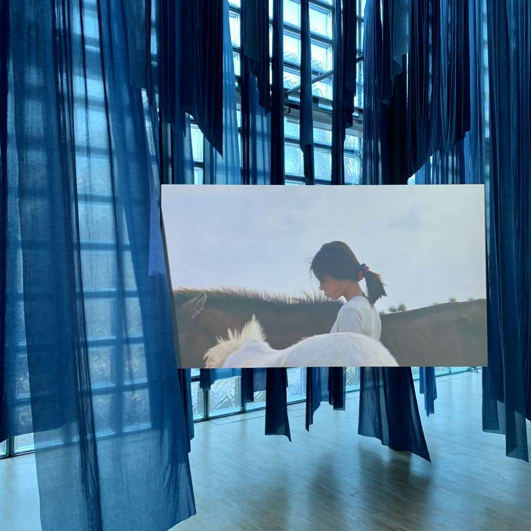 なかでも注目したいのが、映像作品《潮》(2018)と《依代》(2020)。与那国島で撮影された、沖縄生まれの少女とその愛馬が主人公になった《潮》と、デュマの愛娘が馬の衣装を着け、ひとりでオランダから与那国島までを旅する《依代》は、いずれも人間と馬とのごく自然な関係性をみずみずしく描いたものだ。
