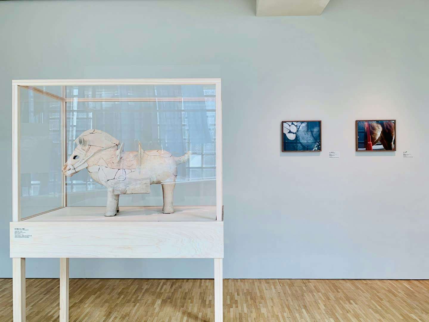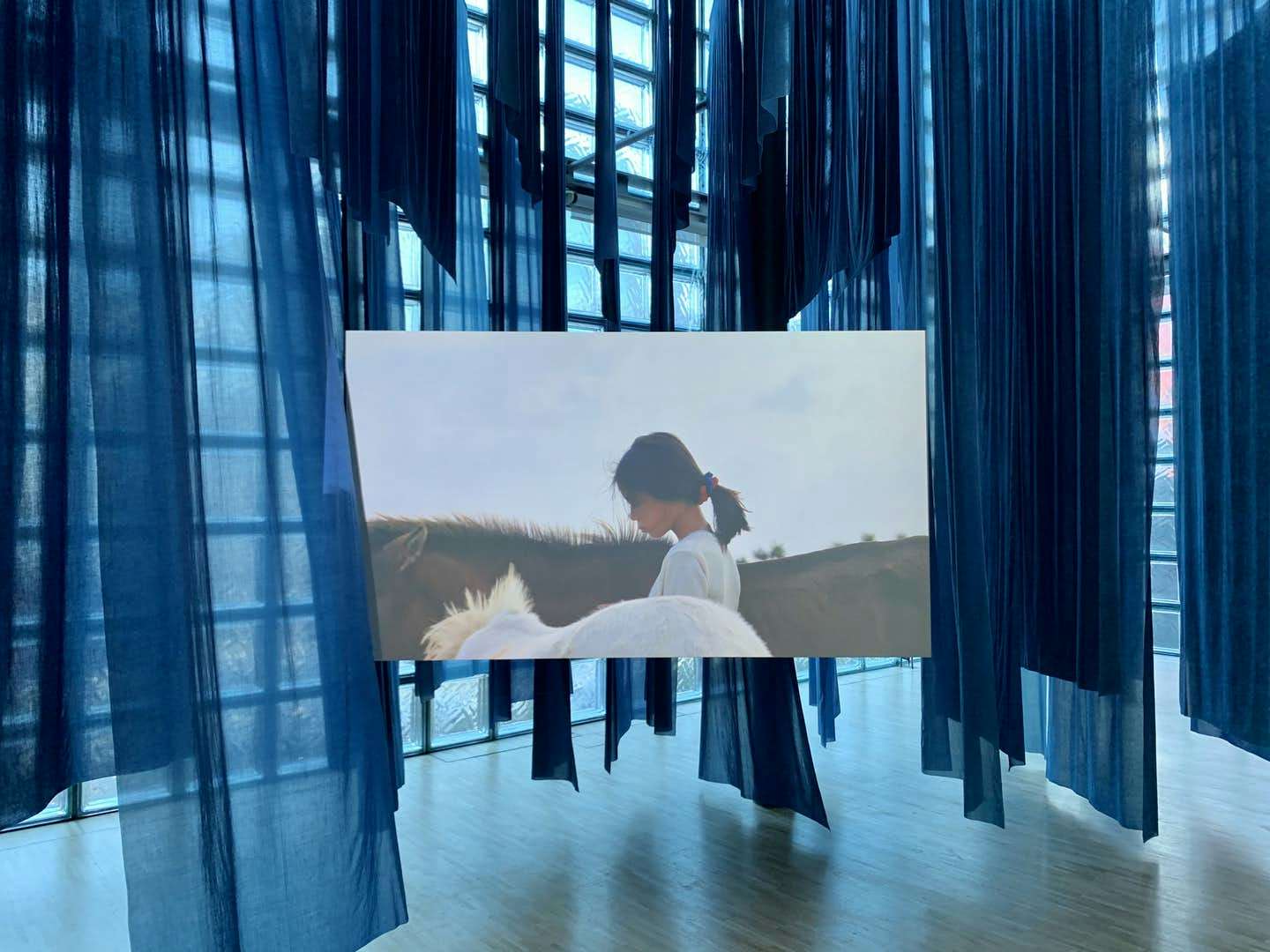 「ベゾアール(結石)」の展示風景より、映像作品《潮》(2018)とインスタレーション《潮》(2020)