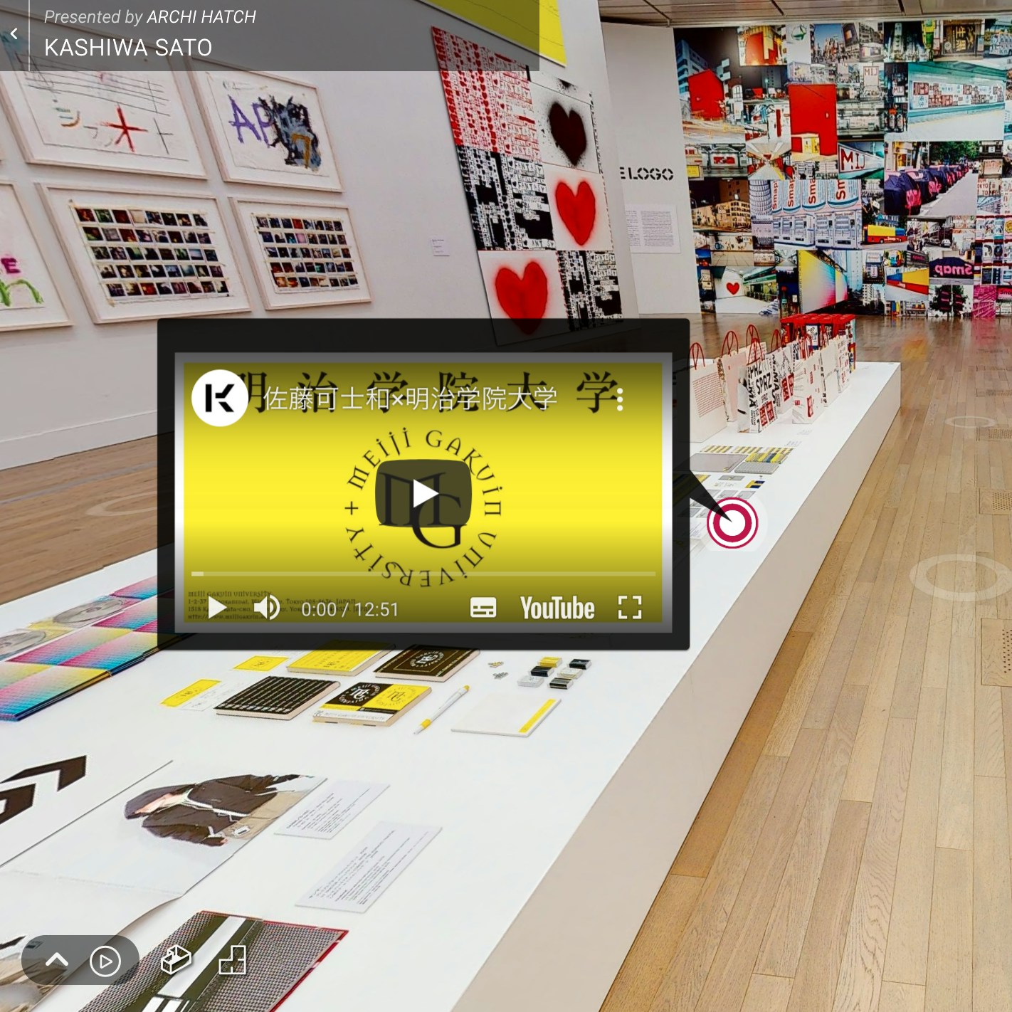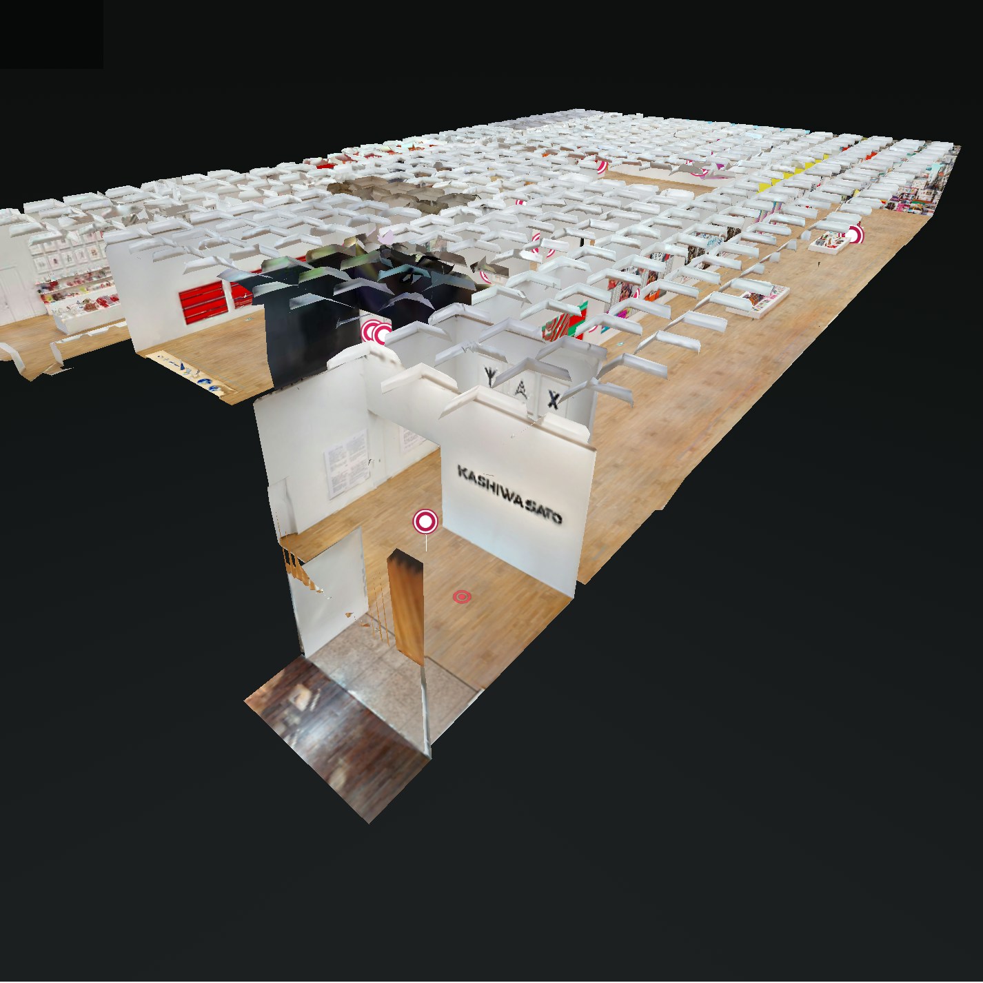 擬似的に会場を進めるだけでなく、「ドールハウス」機能を使えば広大な会場を俯瞰して見ることもできる。またポイントごとに作品に関連する映像リンクが貼られており、より立体的に展覧会を楽しむことが可能となっている。