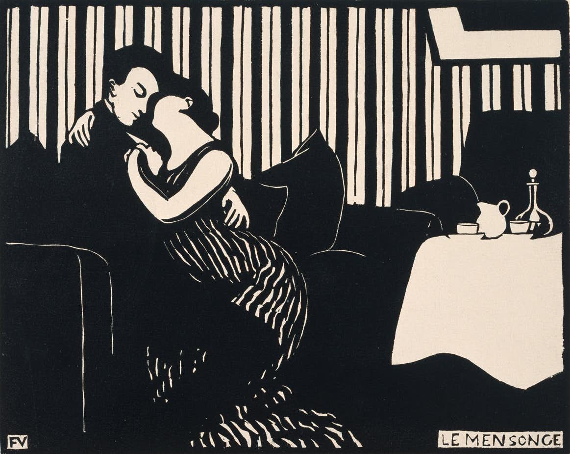 フェリックス・ヴァロットン 嘘(アンティミテI) 1897木版、紙 17.9×22.5cm 三菱一号館美術館