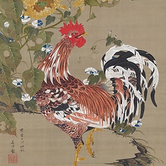 本展ではまた、同じく宮内庁三の丸尚蔵館が所蔵する国宝《動植綵絵》もその目で見ることが叶う。同作は伊藤若冲が生命の美しさを約10年にわたって表現した大作。この《動植綵絵》全30幅のうち、《向日葵雄鶏図》や70種類近くの虫を画面いっぱいに描いた《池辺群虫図》など10幅が一堂に会する。