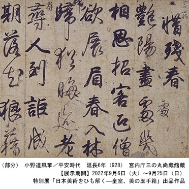 第1章「文字からはじまる日本の美」には、平安時代三跡のひとり・小野道風の国宝《屏風土代》などが並ぶ。物語や和歌を発展させ、日本美術の土壌を築いた日本の文字が、そこにあった日本人の感性と合わせて提示される。