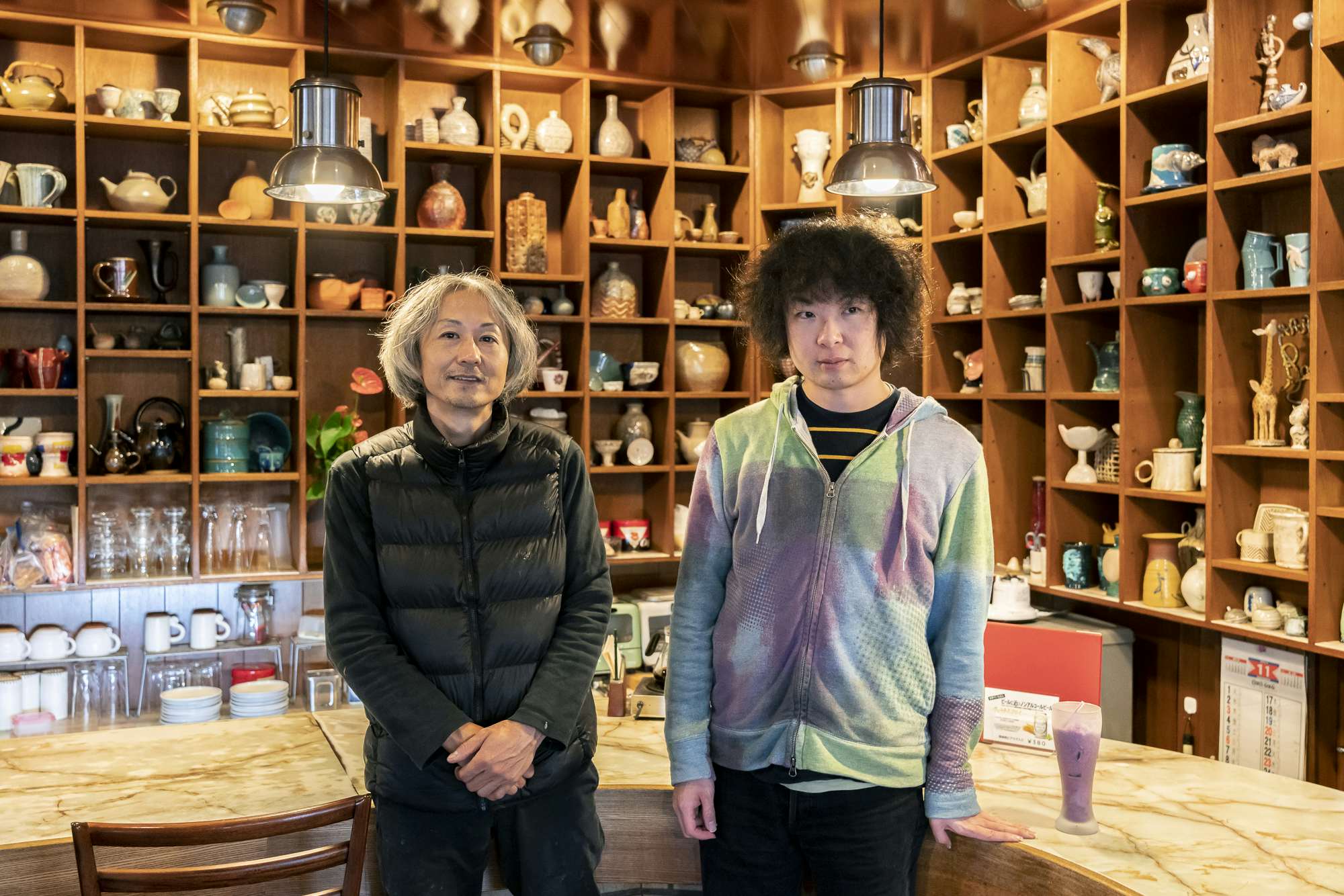 「陶園」にて、上田勇児と梅津庸一 撮影=守屋友樹