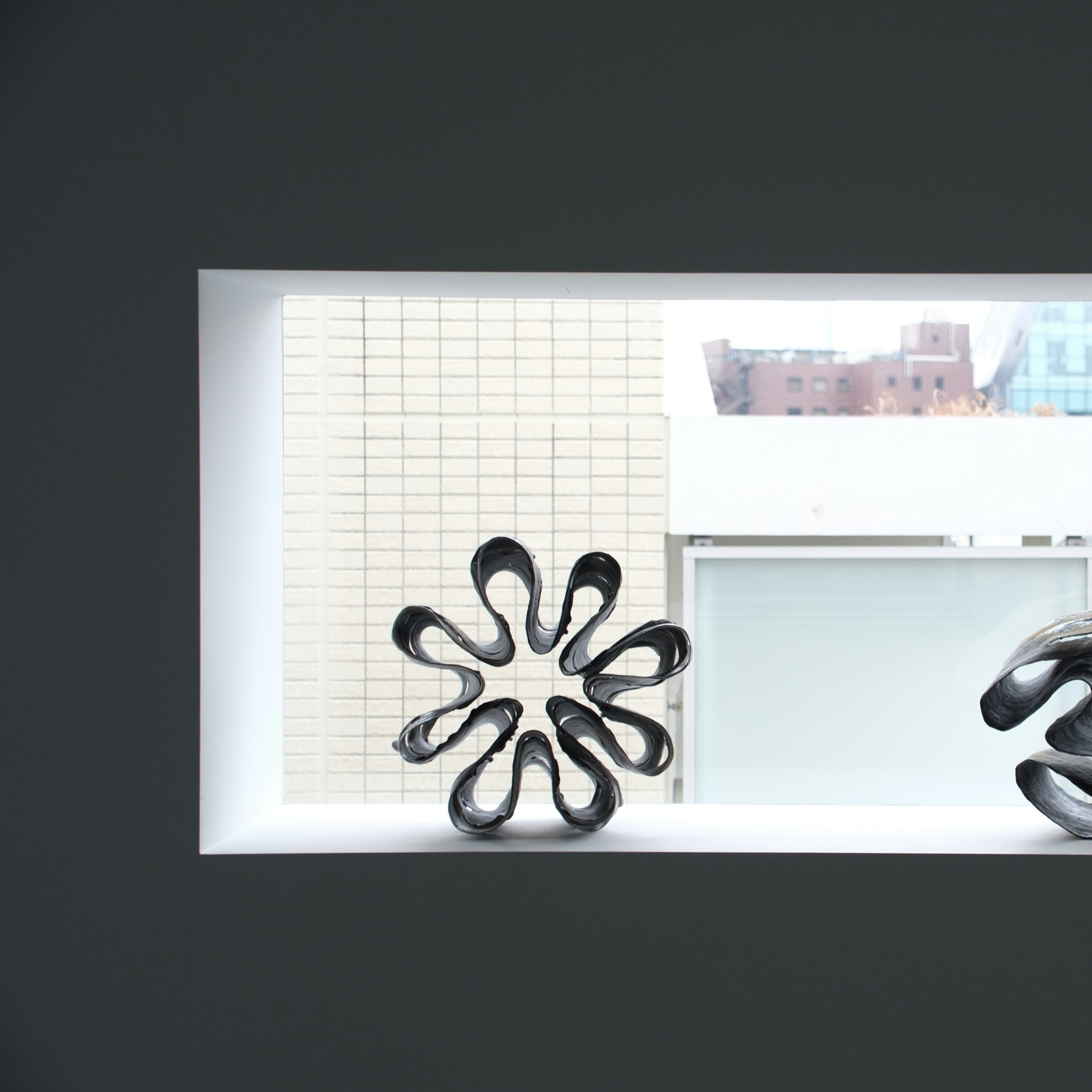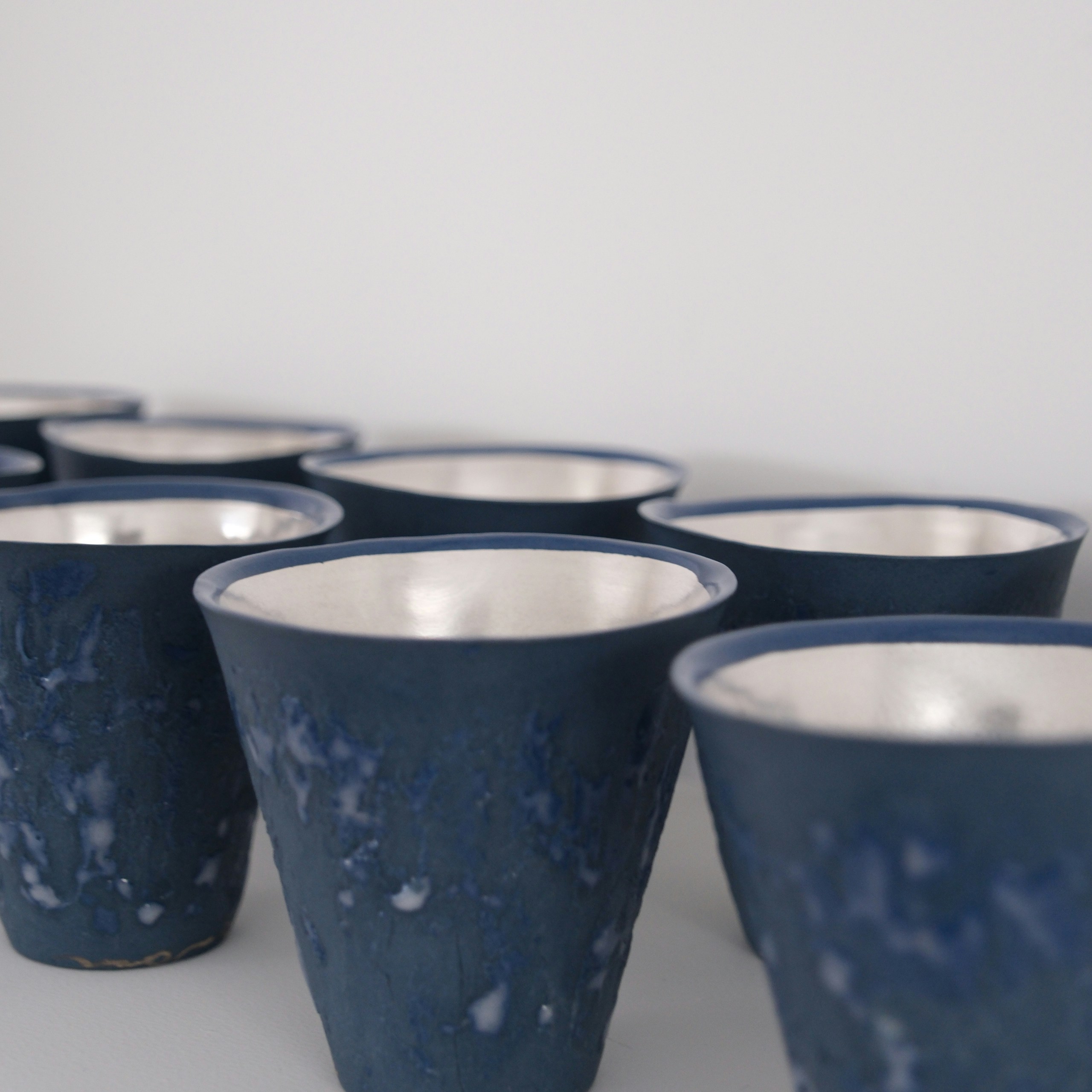 陶芸の世界でごく当たり前に使われる⼟と釉薬。これを融点の異なる陶芸素材と再解釈し、そのふたつを同⼀線上で扱うことでやきものの新しい表現を追求し続ける中井。その作品は力強く繊細であり、有機的に立ち上がったフォルムが大きな特徴だ。