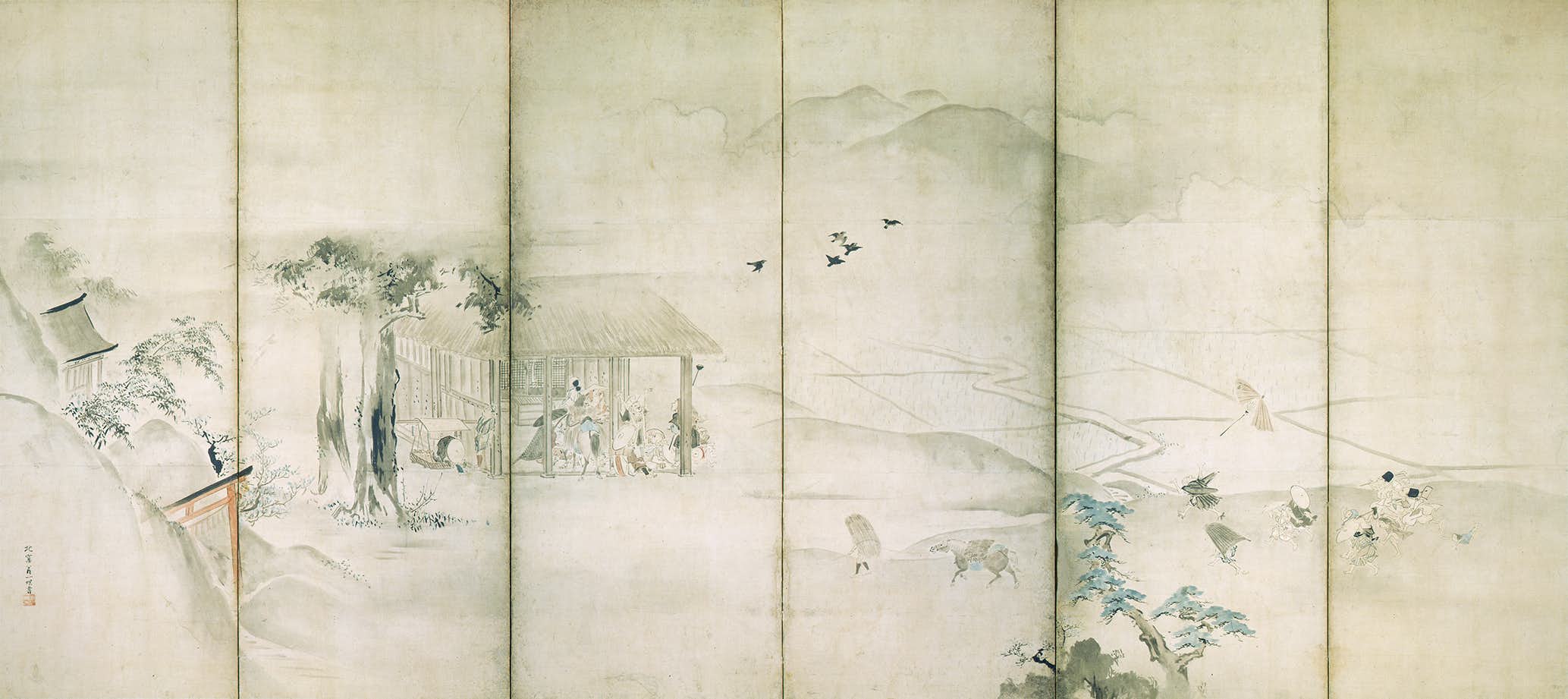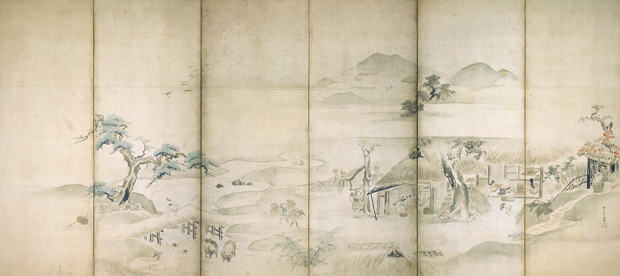 英一蝶 田園風俗図屛風 六曲一双のうち右隻 江戸時代(18世紀) サントリー美術館