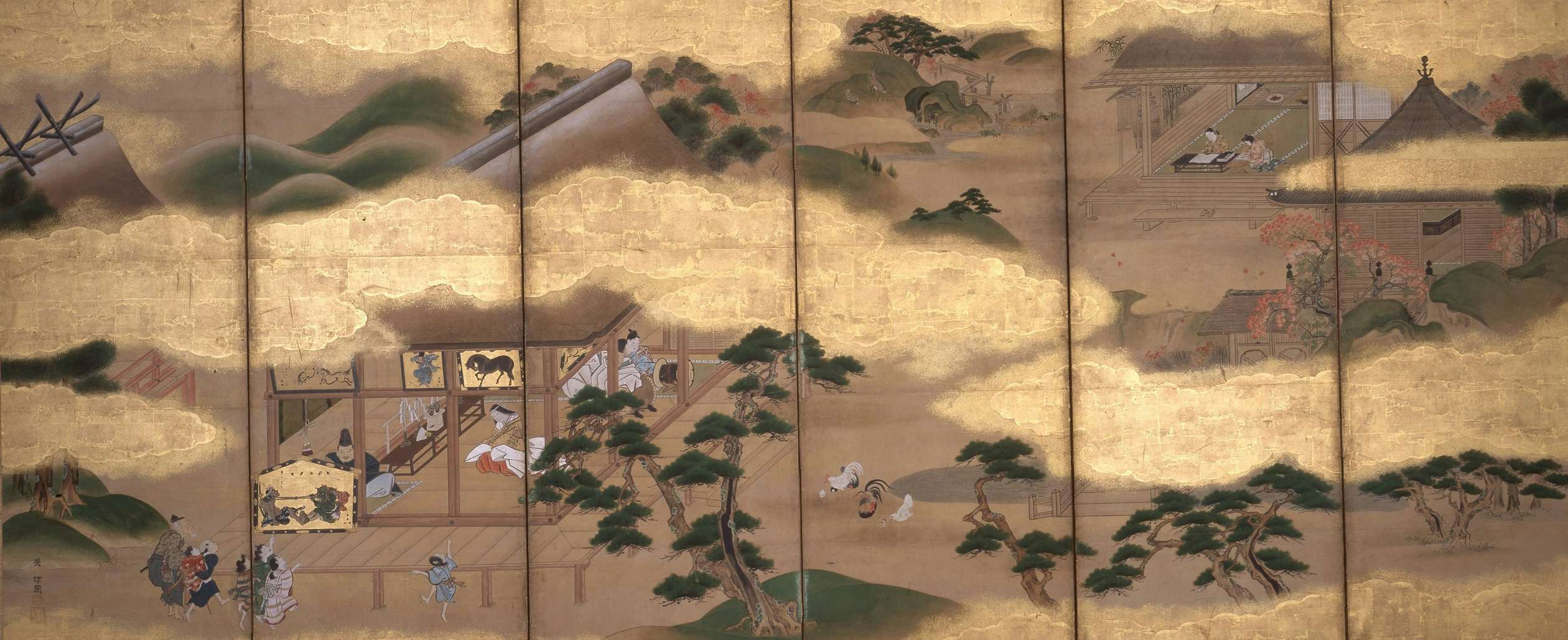 英一蝶 琴棋書画図屛風 江戸時代(18世紀) 六曲一双のうち右隻 今日庵
