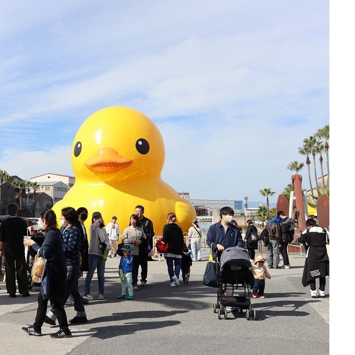 オランダ人アーティストのフロレンティン・ホフマンは「世界にはボーダーラインはない」というメッセージを伝えるために、高さ9.5メートルの《ラバー・ダック》を制作。世界各地の河川や海などの水辺をバスタブに見立て、この《ラバー・ダック》を様々なエリアの水面に登場させてきた。