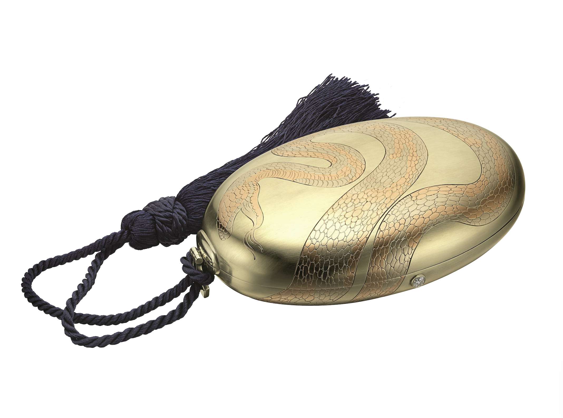 「セルペンティ」イブニングバッグ 1978頃 ホワイト、レッド、「シーウォーター」グリーンゴールド、シルクコード、ダイヤモンド ブルガリ・ヘリテージ・コレクション