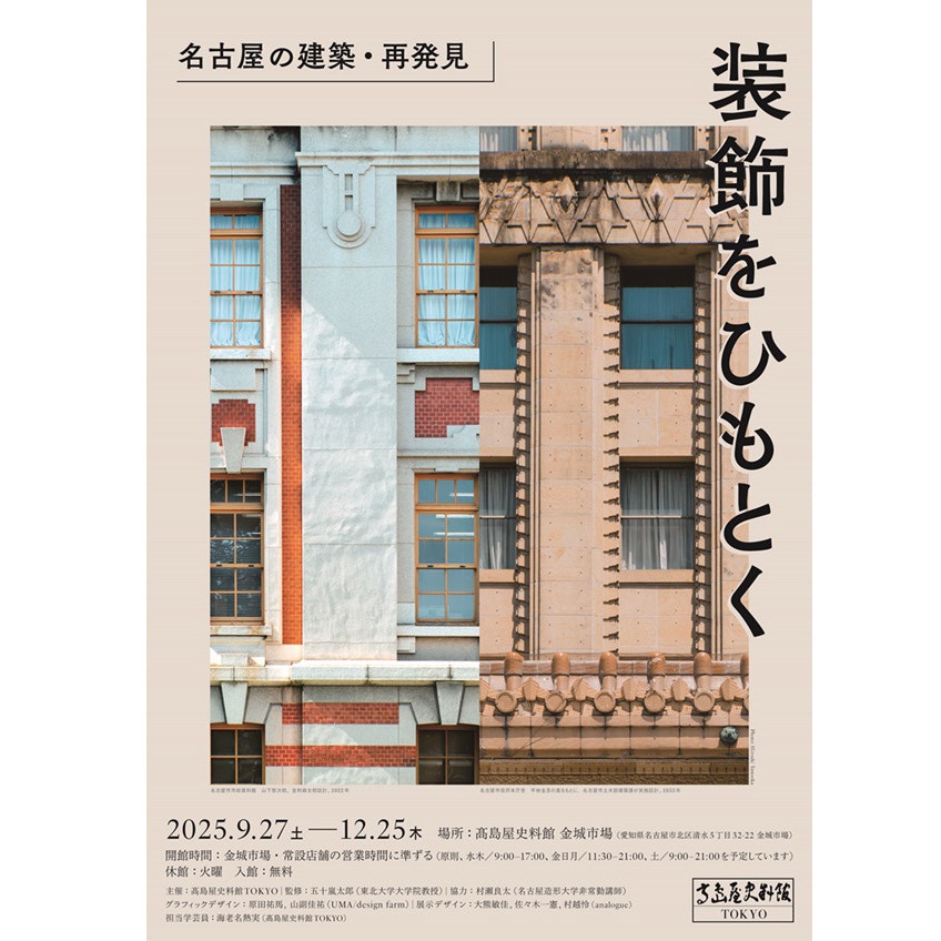 東京・日本橋高島屋S.C.本館内にある高島屋史料館TOKYOで開催されてきた「装飾をひもとく」展(2020年9月〜2021年2月)と、その続編となる「さらに装飾をひもとく」展(2024年9月〜2025年2月)。この展示が、名古屋の高島屋史料館 金城市場でも開催される。監修は五十嵐太郎(東北大学大学院教授)が務める。