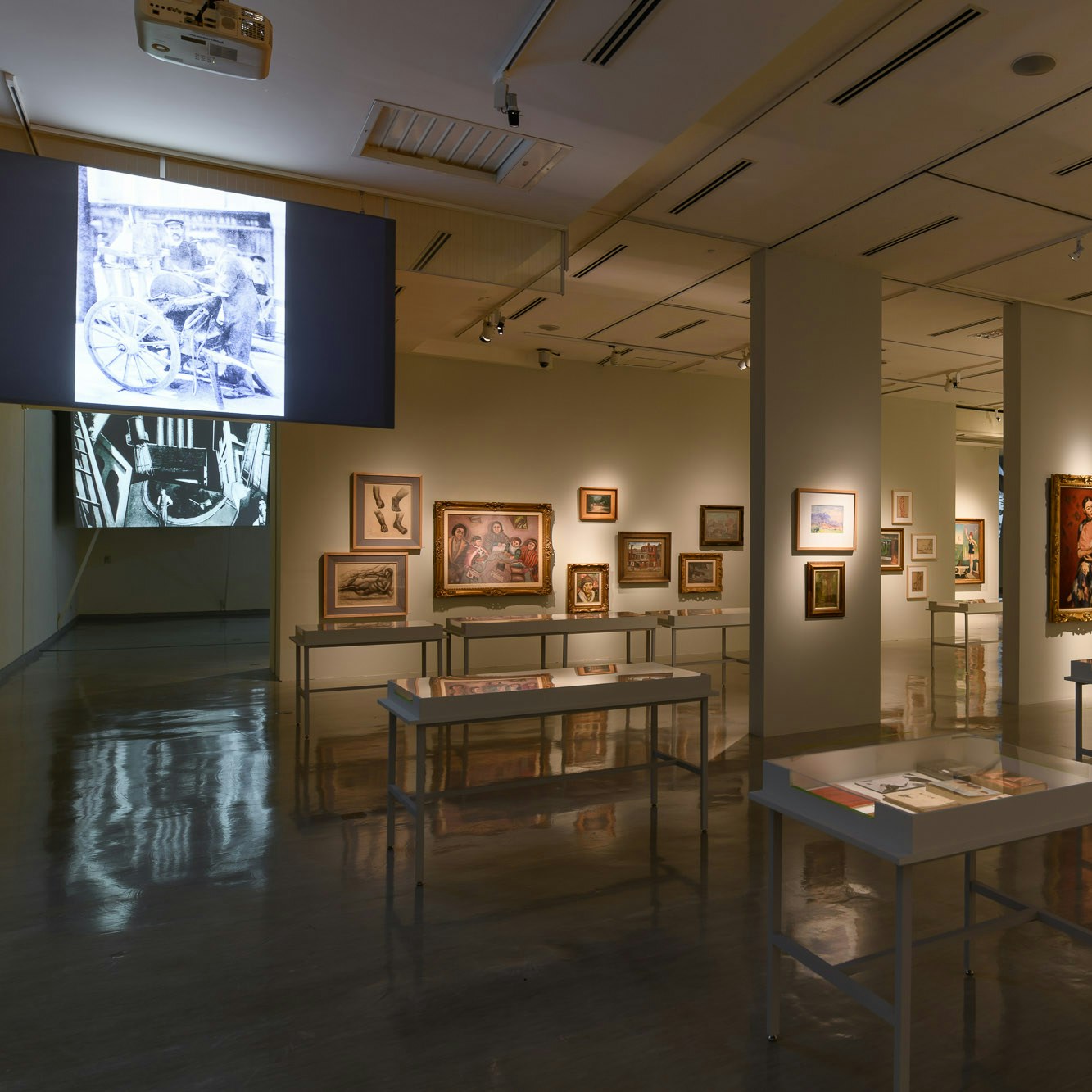 9月5日〜12月13日の会期では、「共時的星叢―時を共にした星たち 越境する芸術のまなざし」が開催。本展は、日本と台湾における近代の受容と発展を、美術、映画、文芸、音楽など多様な芸術文化を切り口に再考するもの。映画監督・黄亜歴(ホアン・ヤーリー)が日本統治下の1930年代台湾で結成されたモダニズム詩社「風車詩社」の文化的交流や葛藤を描いた映画『日曜日の散歩者』の実験的な映画言語を反映した空間で、時代や地域、ジャンルを越え表現を共鳴させることで、現代の視点から近代を見つめ直す試みだという。