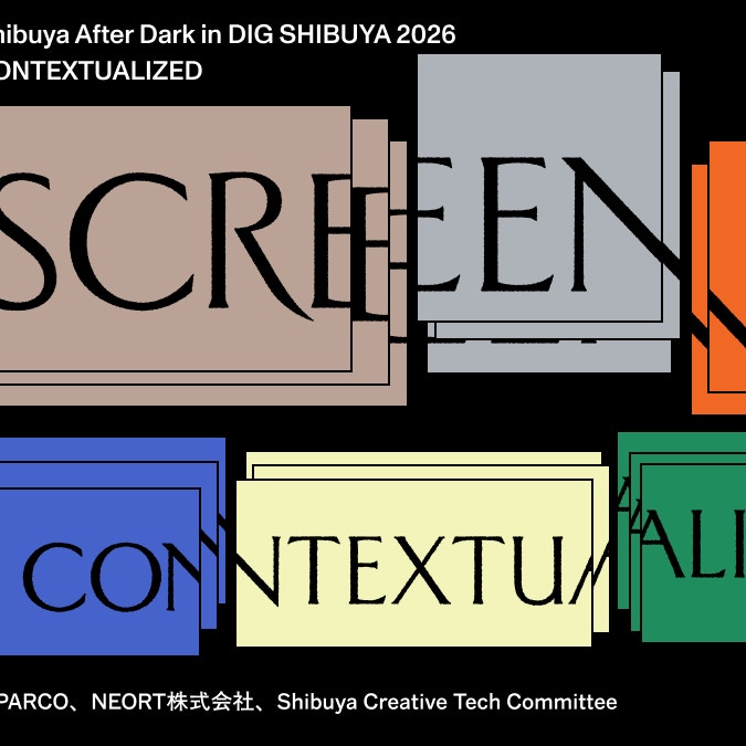 渋谷各所のデジタルサイネージを用いた「SCREENS CONTEXTUALIZED」では、40名以上のアーティストが参加し、街全体を「屋外美術館」へと変換。スクリーンが置かれた場所の記憶や歴史的文脈を読み替えながら、デジタル・パブリックアートを展開する。夜間には渋谷PARCOとNEORTが映像作家・プログラマーの岡本斗志貴を迎え、PARCO渋谷店の壁面でプロジェクションマッピング「Projecting Shibuya After Dark」(2月14日)を実施。昼と夜で異なる都市の表情を浮かび上がらせる。
