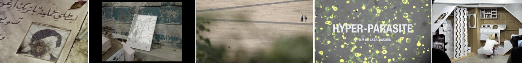 左から、エリック・ボードレール 重信房子、メイと足立正生のアナバシス そしてイメージのない27年間/玄宇民 残像旅/ジョイス・ラム A Windy Day/安田朱里 ハイパー・パラサイト/尹苑 Departure: The First Exercise and the Last(出発:最初と最後の練習)
