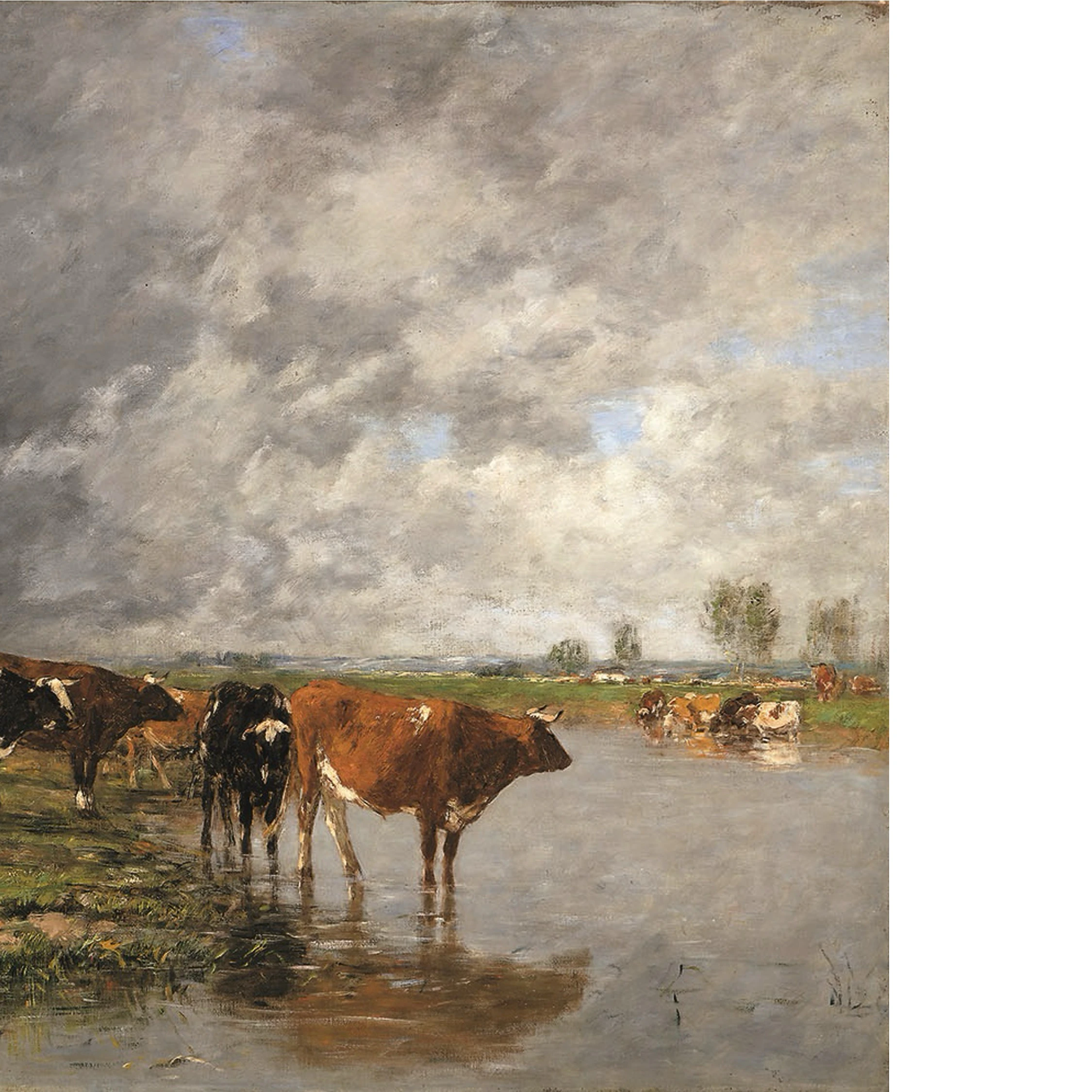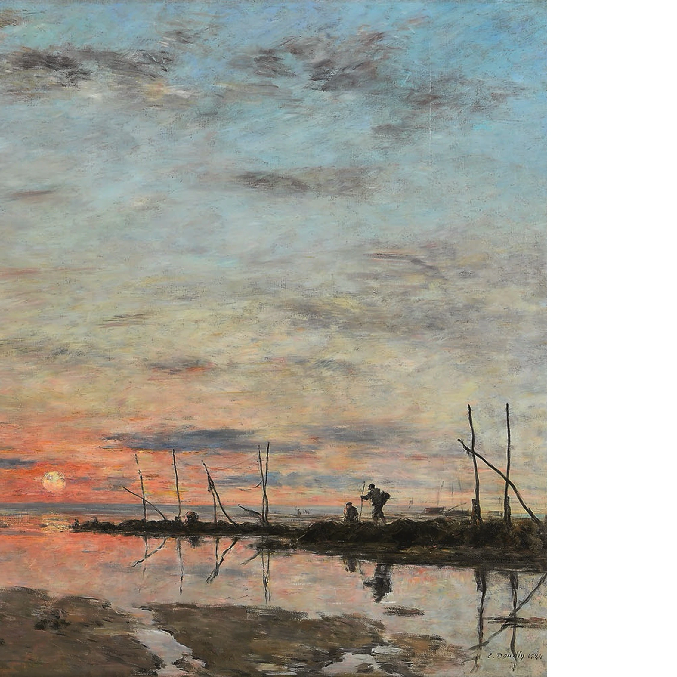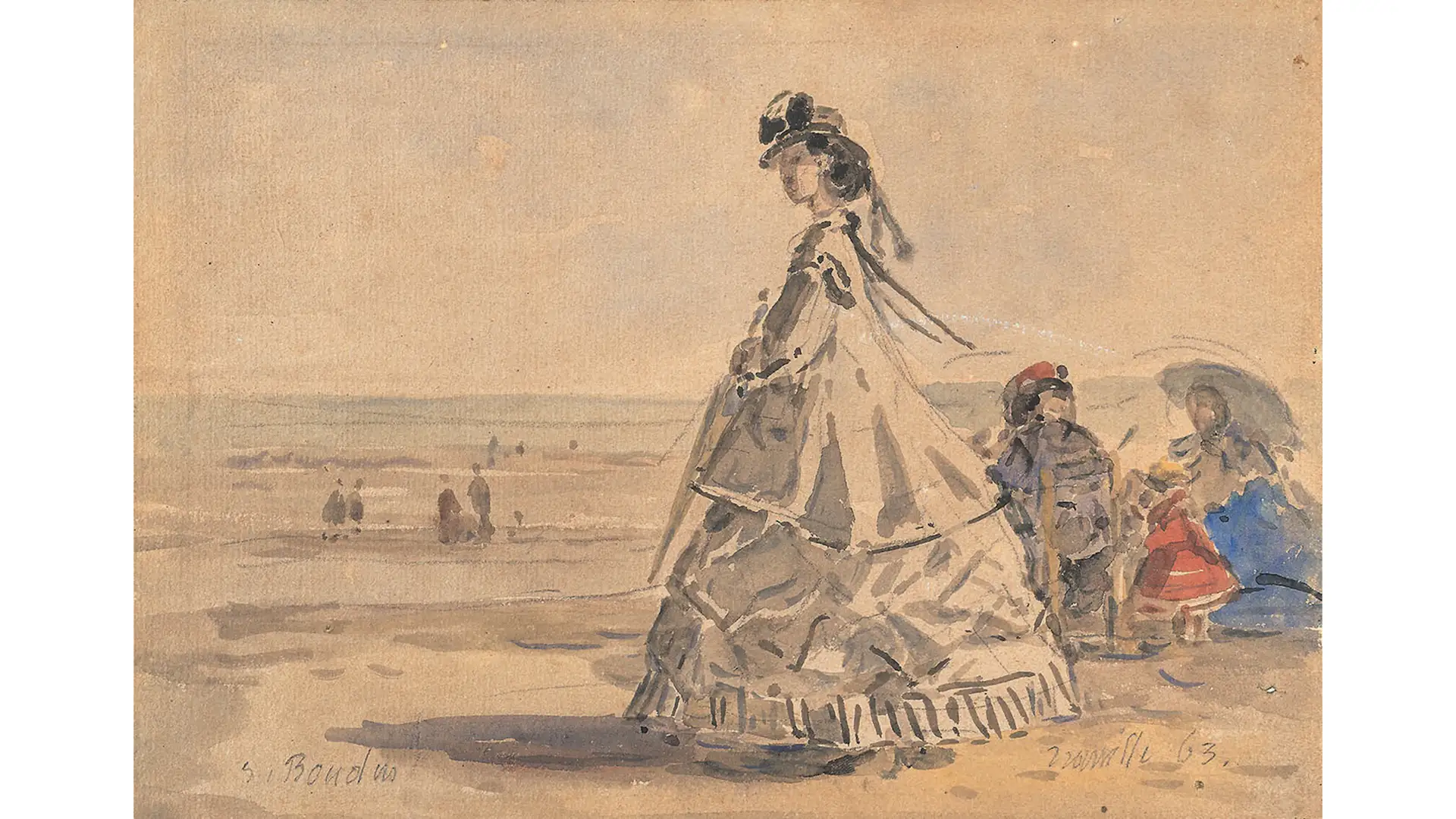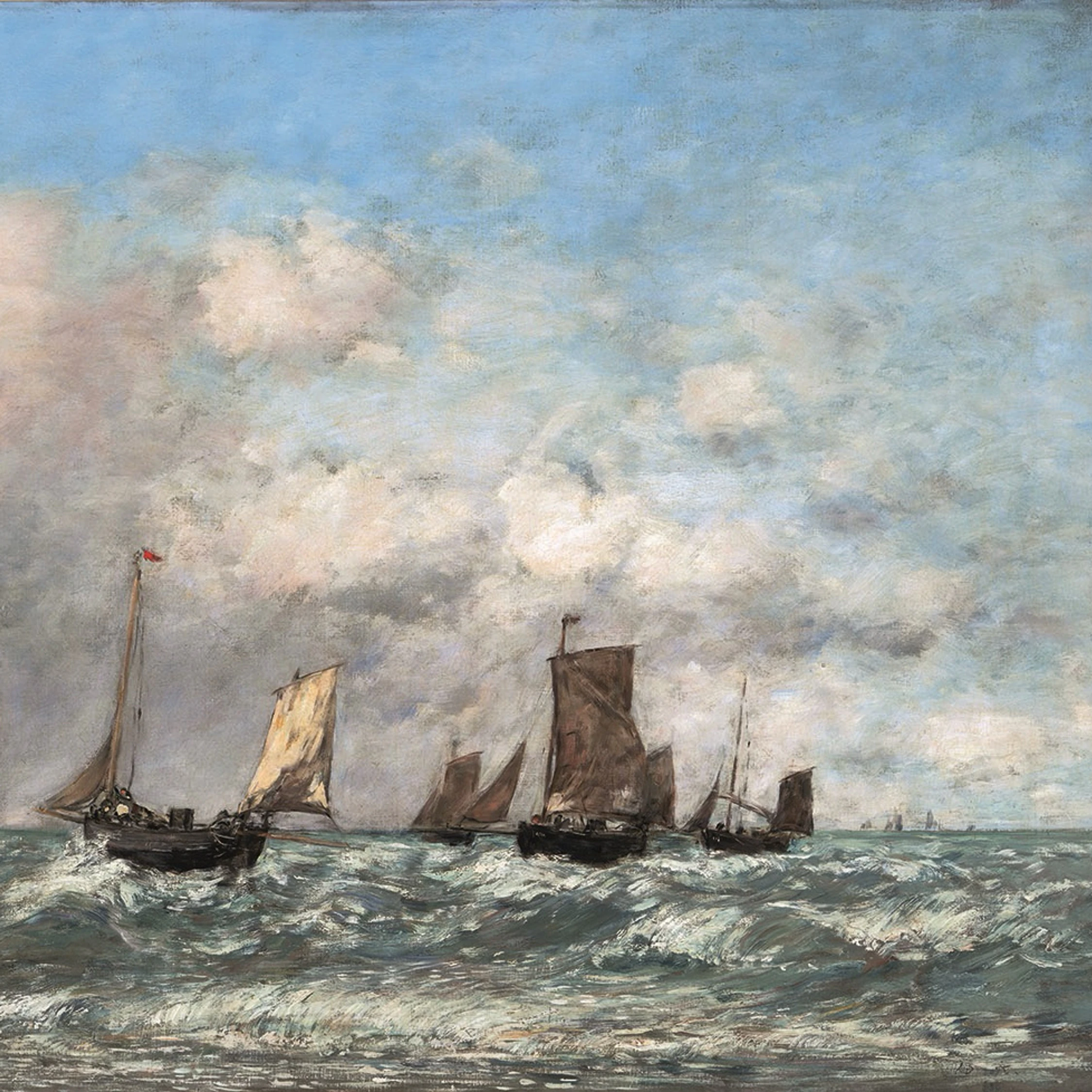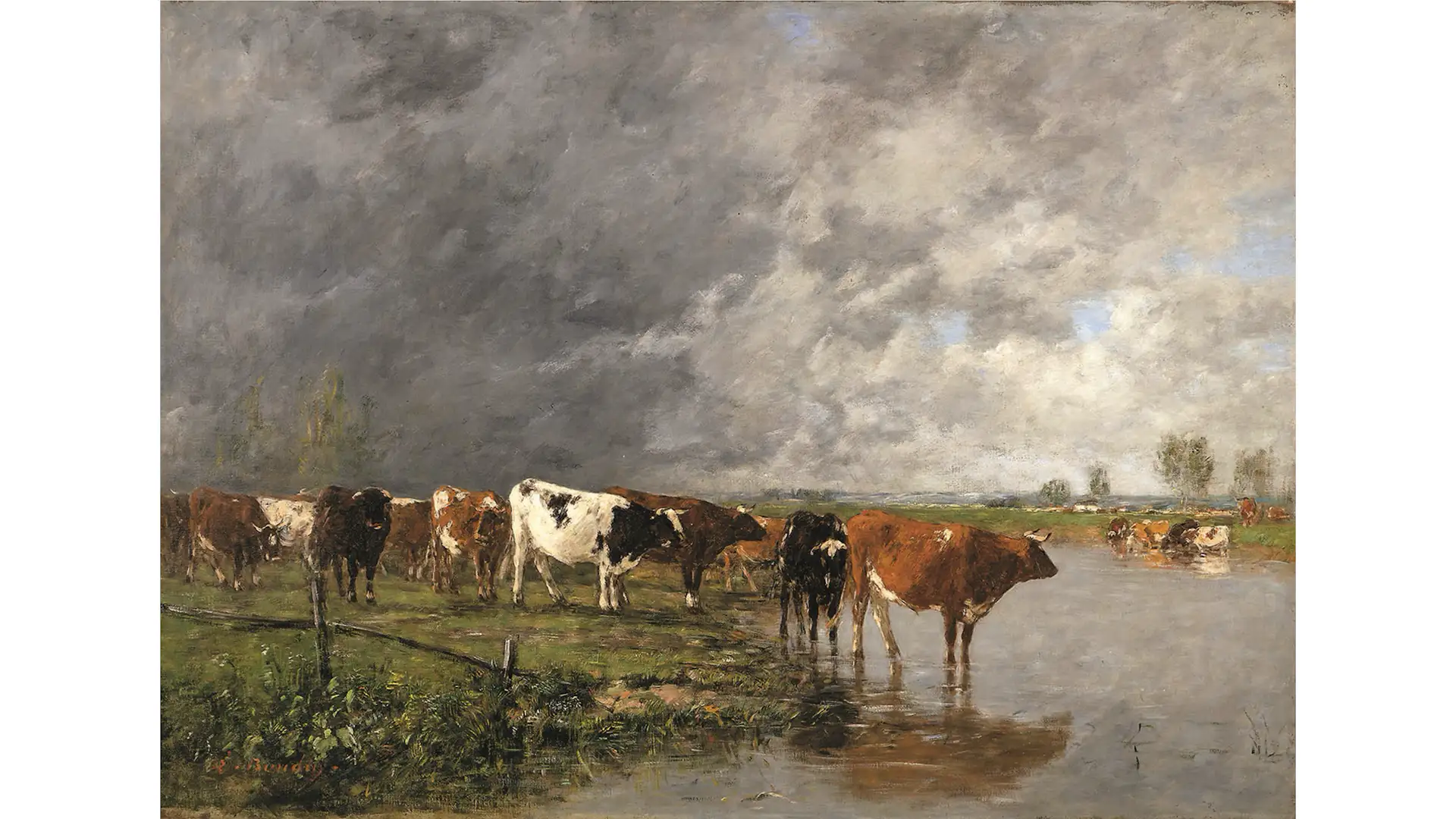 「印象派の先駆者」と呼ばれる画家、ウジェーヌ・ブーダン(1824〜98)は、フランス・ノルマンディー地方の港町オンフルールに船乗りの子として生まれた。移住先のル・アーヴルで出会ったバルビゾン派の画家たちと交流するなかで画家を志す。空や雲、海景、牛の群れなどを瑞々しい色彩と軽快な筆致で描き出す作風で知られるブーダンは、1850年代半ばに出会った青年期のクロード・モネとともに戸外制作を行い、これがのちの印象派誕生へつながったと言われている。