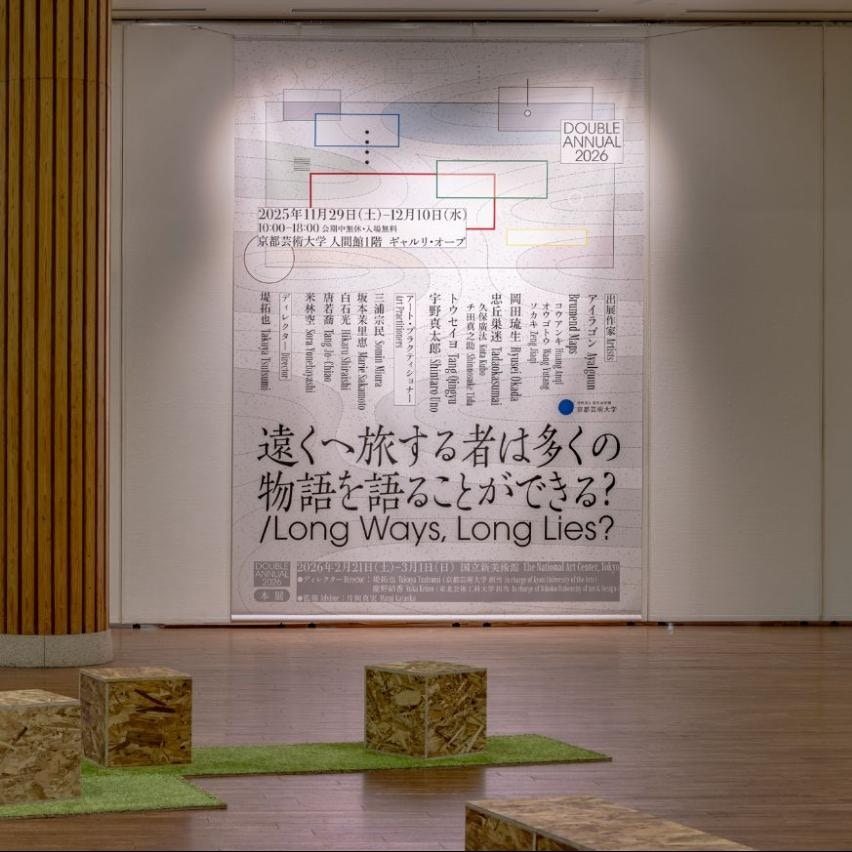 東京・六本木の国立新美術館で、京都芸術大学と東北芸術工科大学による学生選抜展「DOUBLE ANNUAL2026 ──遠くへ旅する者は多くの物語を語ることができる?/Long Ways, Long Lies?」が3月1日までの会期となっている。本展ディレクターは堤拓也(京都芸術大学担当)、慶野結香(東北芸術工科大学担当)、監修は片岡真実(森美術館館長)。