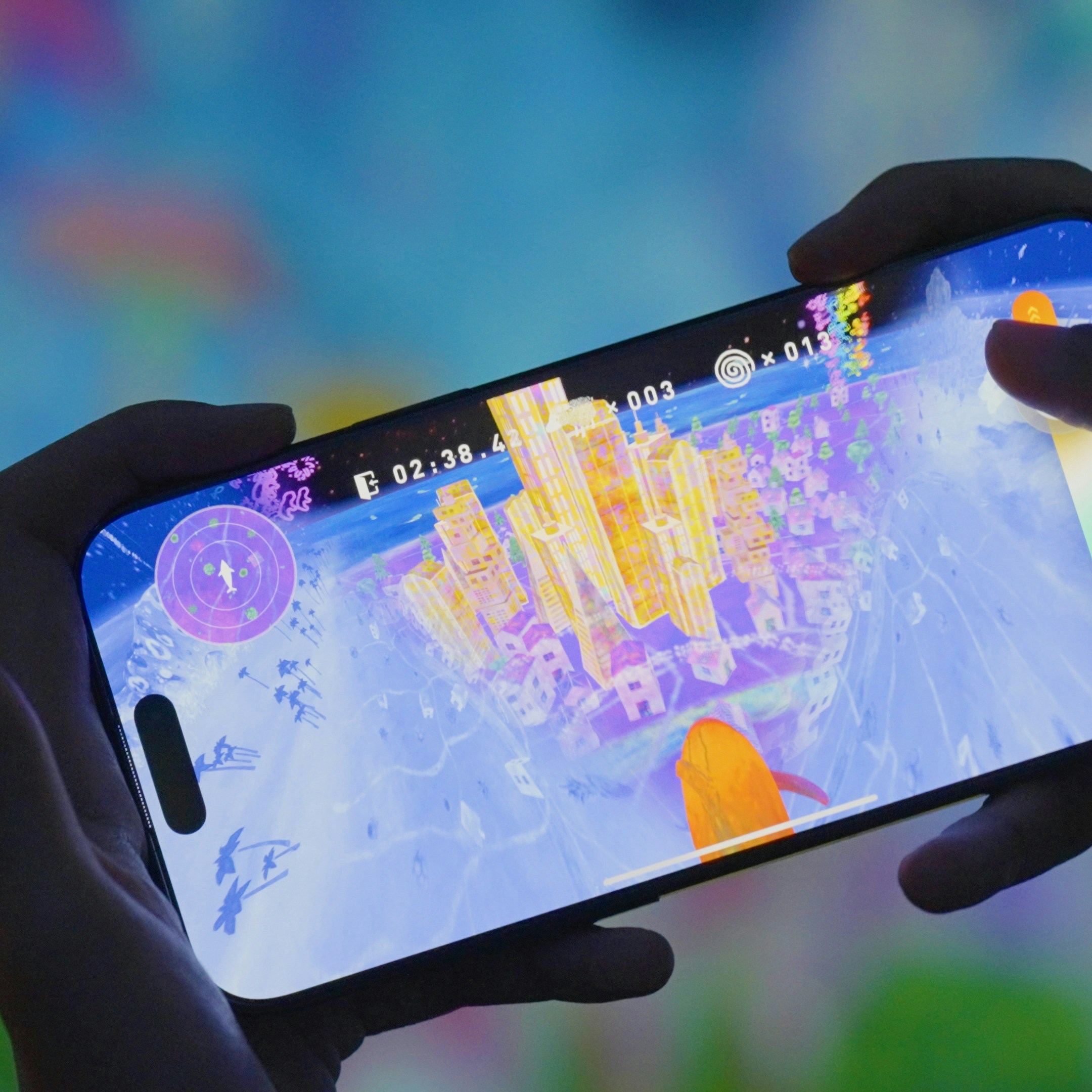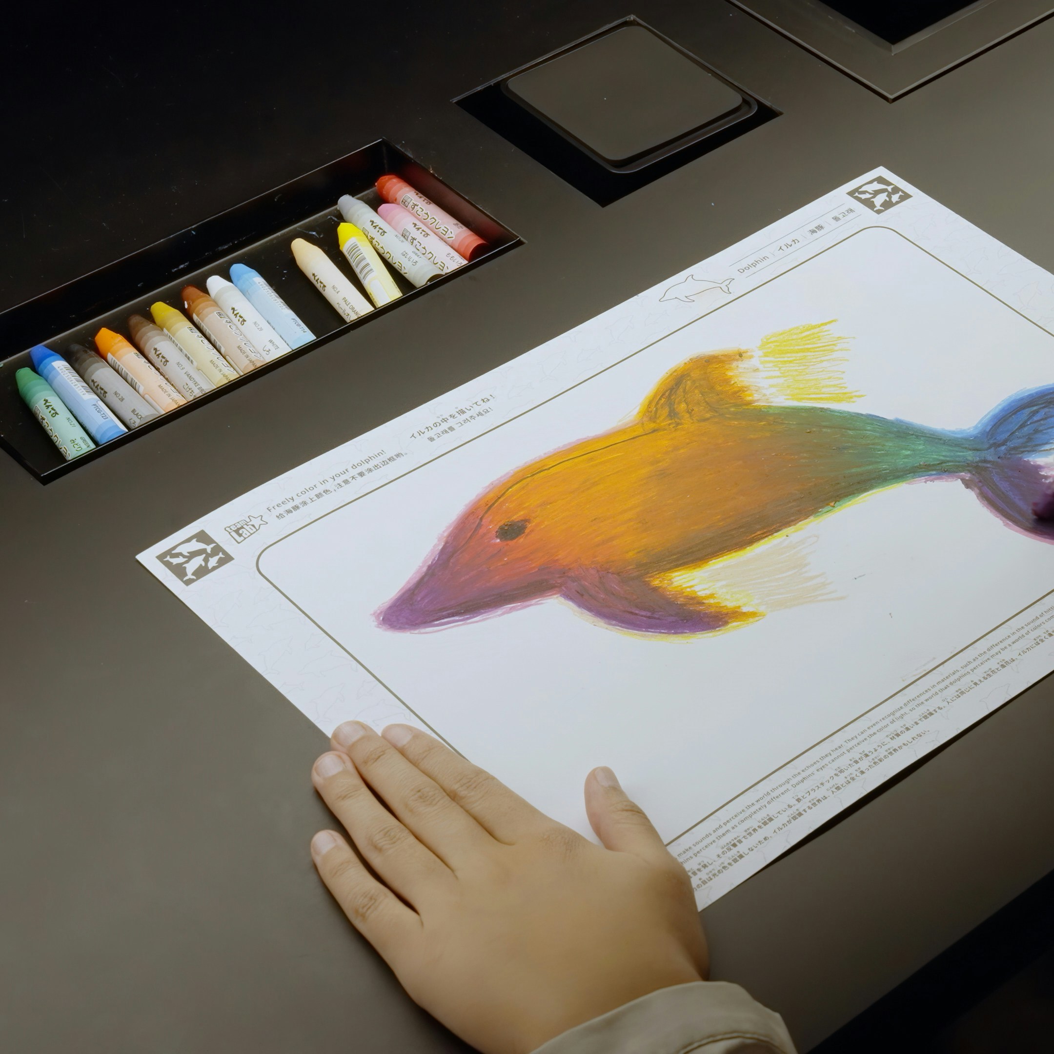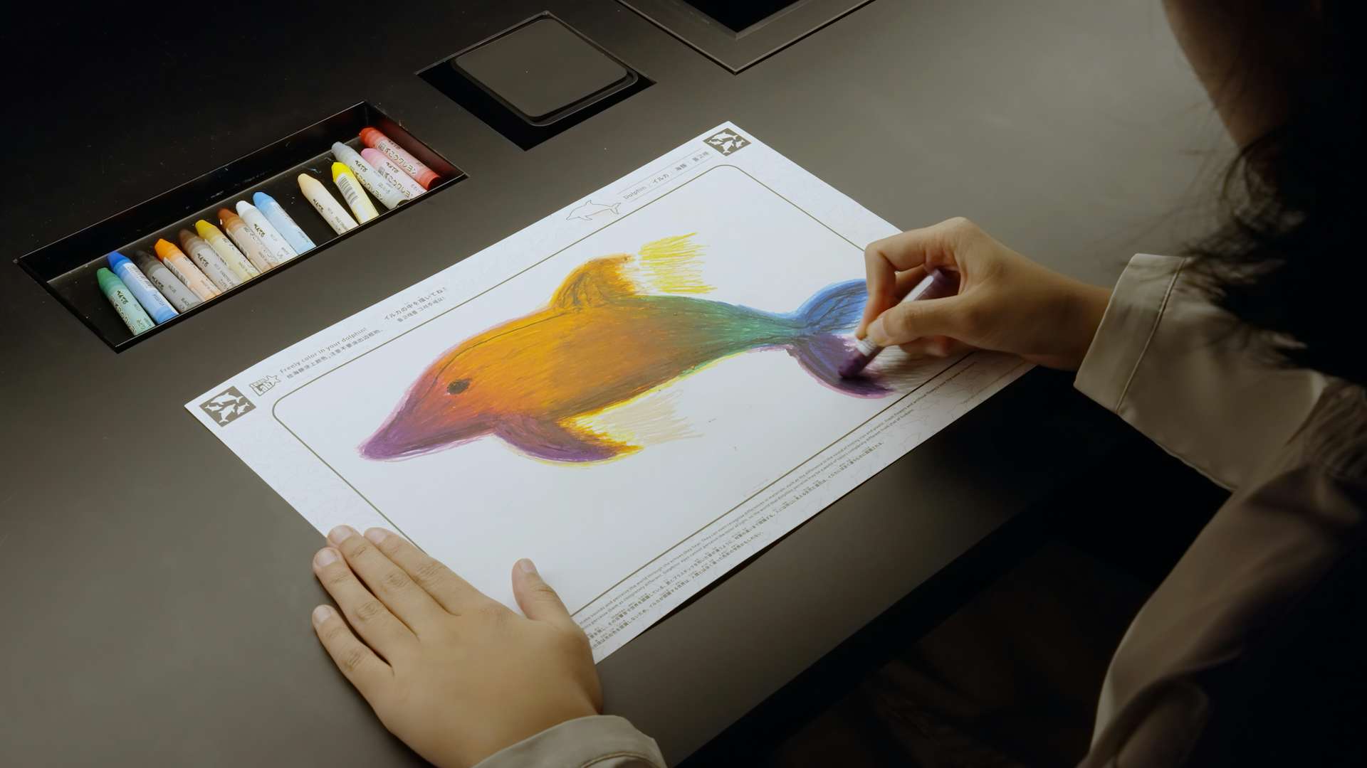 同作は、紙にヒコーキや、イルカ、タカ、チョウの絵を描くと、描いた絵が目の前に立体で出現し、世界に飛び立つというもの。スマートフォンでそのヒコーキやイルカの視点で、それぞれの生き物の「環世界」(世界の見え方)を操縦することができる。