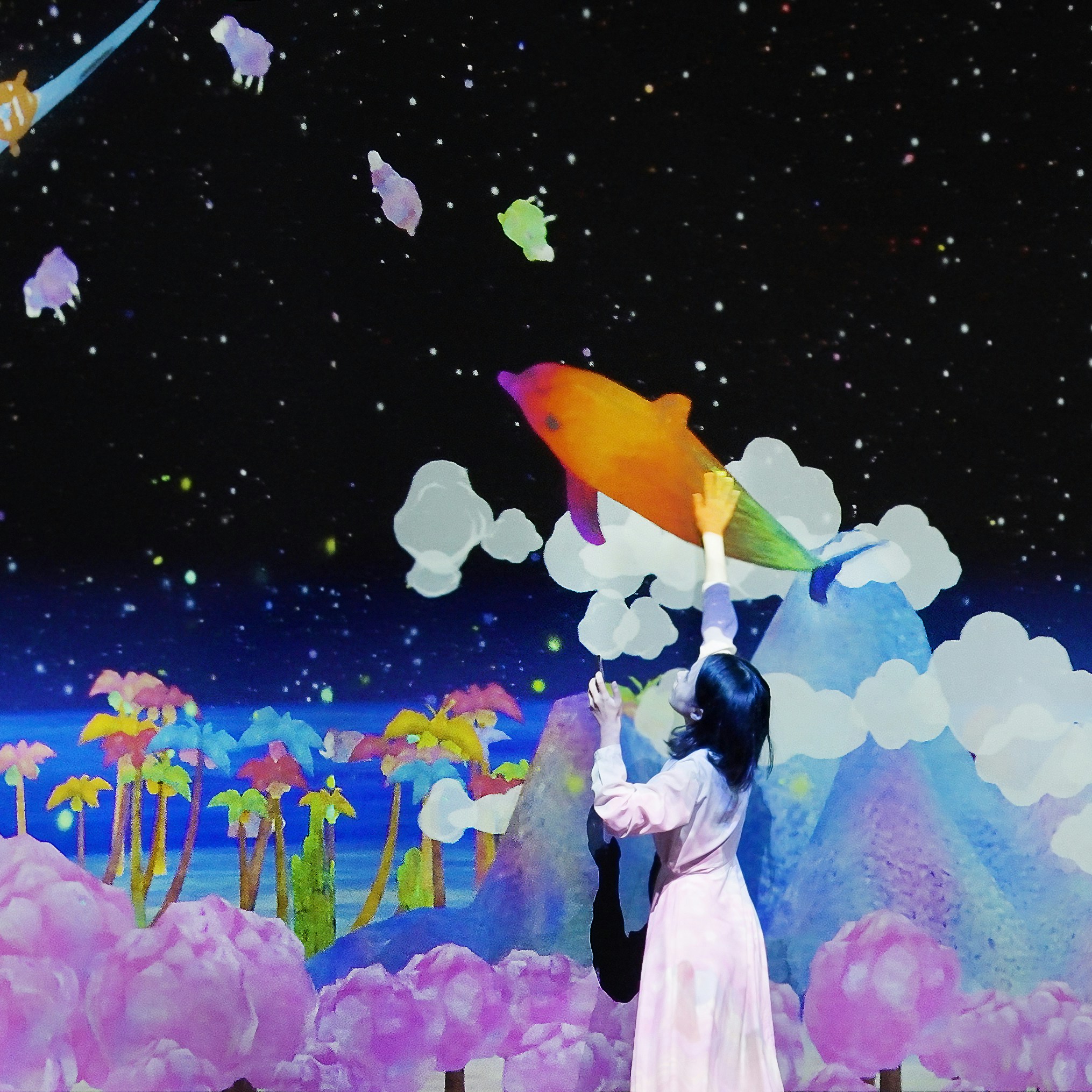 本展は「共創」をコンセプトにした教育的なプロジェクト。他者と共に世界を自由に創造することを楽しむ「学ぶ!未来の遊園地」(*)から、インタラクティブな作品《スケッチ環世界》を展示する。