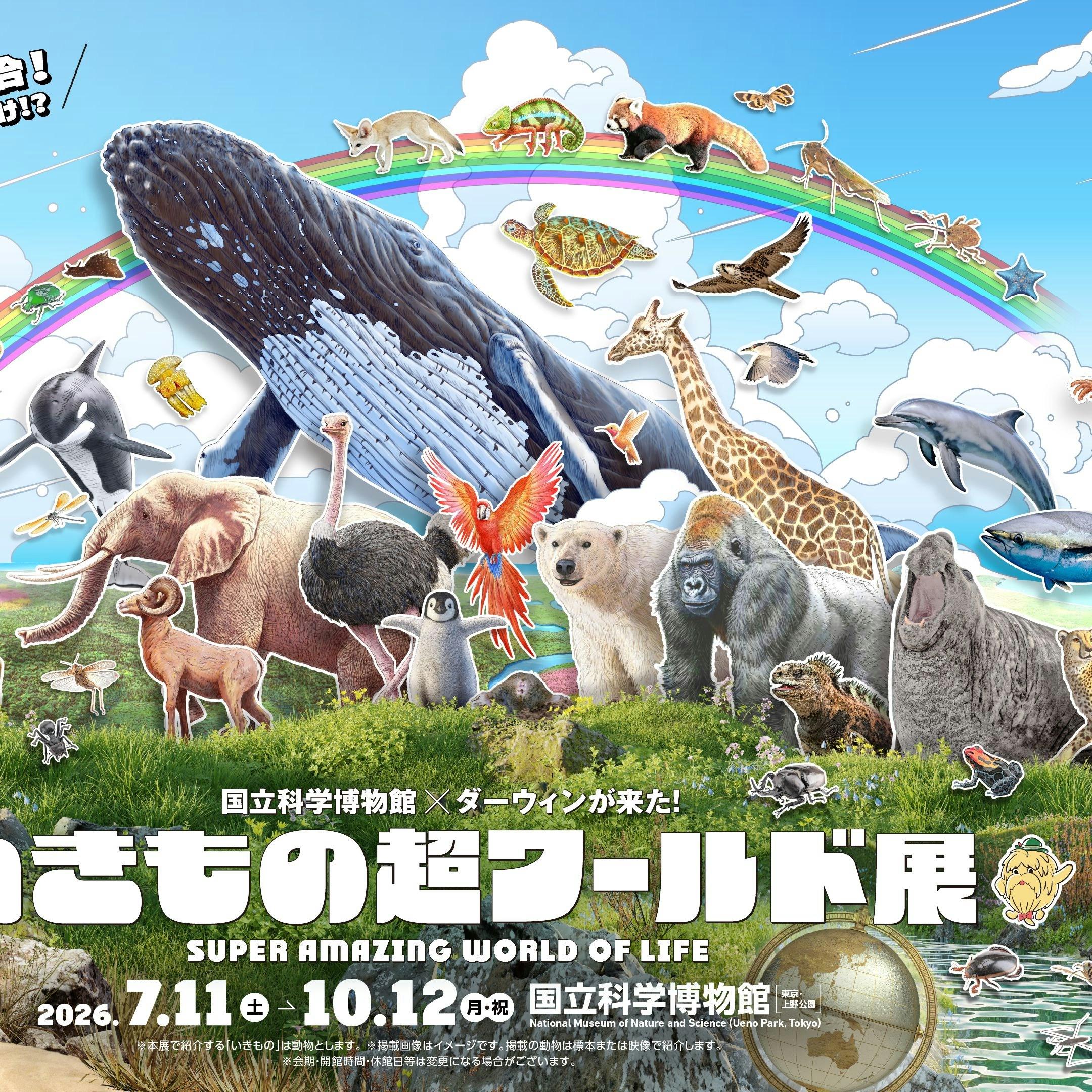 東京・上野の国立科学博物館で、特別展「いきもの超ワールド展 国立科学博物館×ダーウィンが来た!」が開催される。会期は7月11日~10月12日。